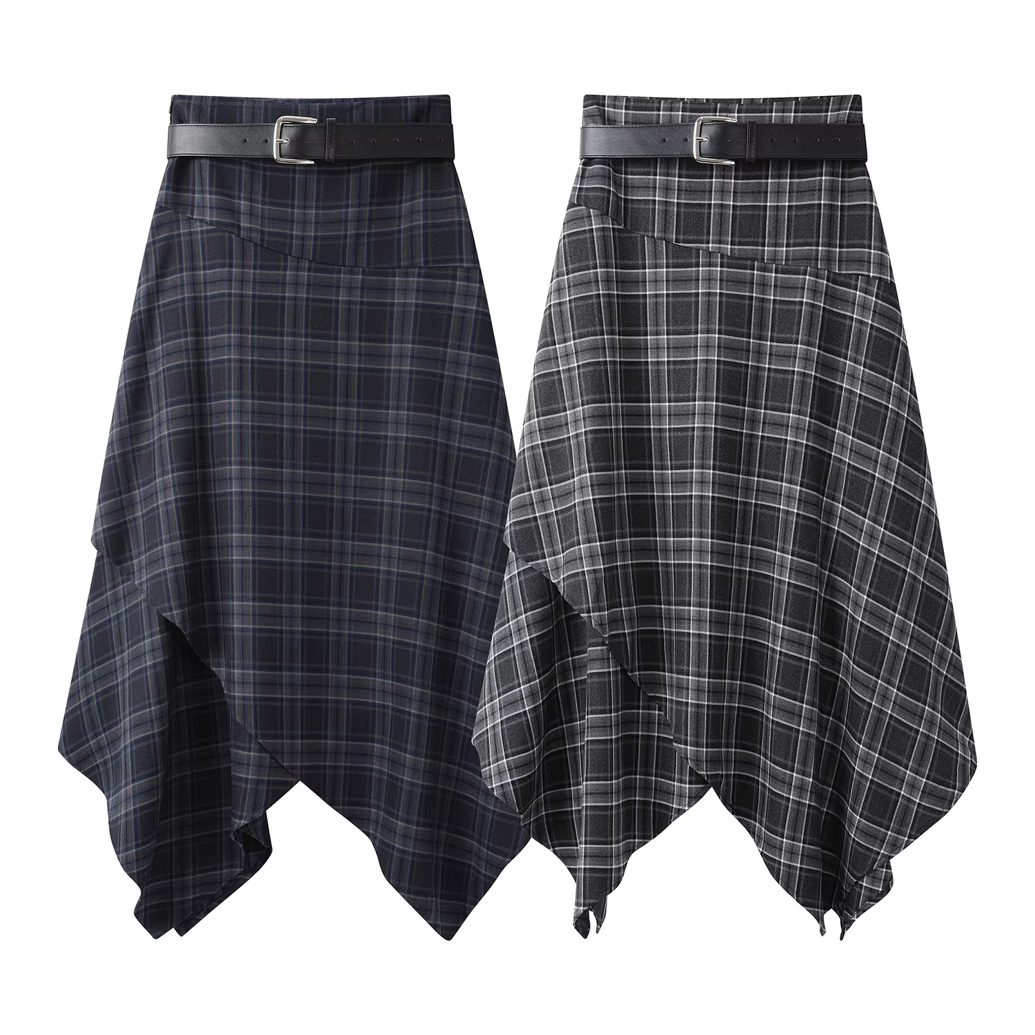 - Váy kẻ sọc cạp cao kiểu preppy dành cho nữ, thiết kế bất đối xứng độc đáo mùa thu sớm, kiểu dáng chữ A tôn dáng
