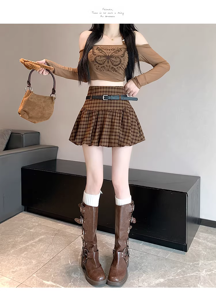 Váy kẻ sọc hoa, váy nửa thân cho nữ, váy phồng xuân thu, váy bánh bèo, váy nửa thân cao eo, váy nửa thân rất đẹp, váy ngắn kẻ sọc.