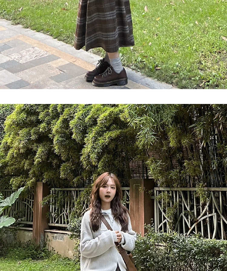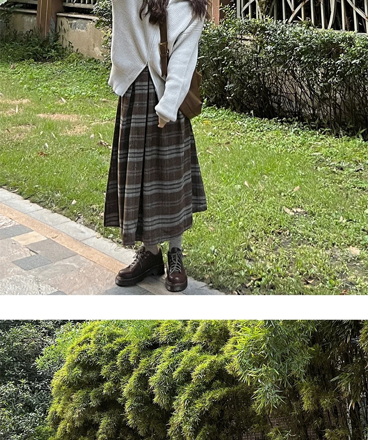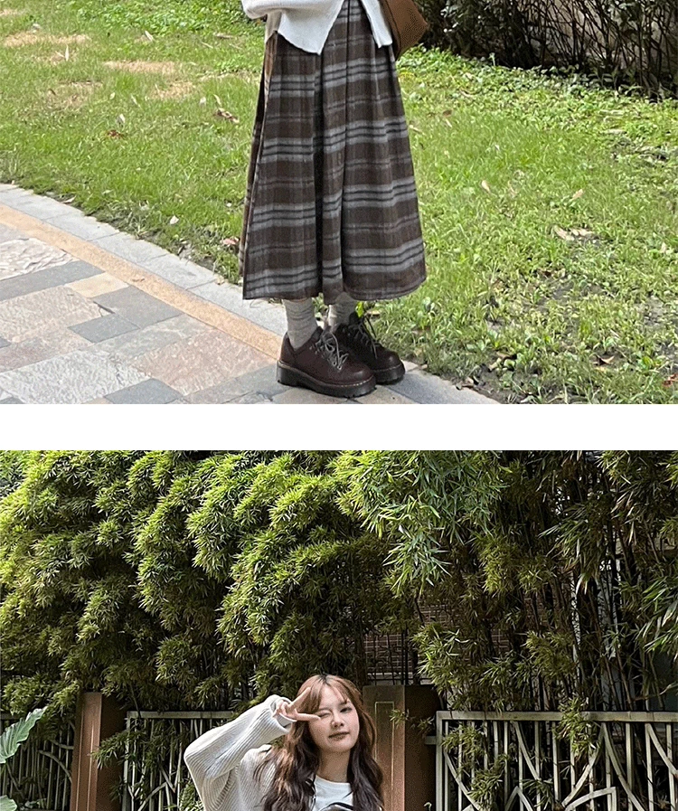 - Váy kẻ sọc len cổ điển dành cho nữ trong mùa thu đông, cỡ lớn, eo cao, tạo vẻ thon gọn và che hông, váy xếp ly chữ A dài vừa phải