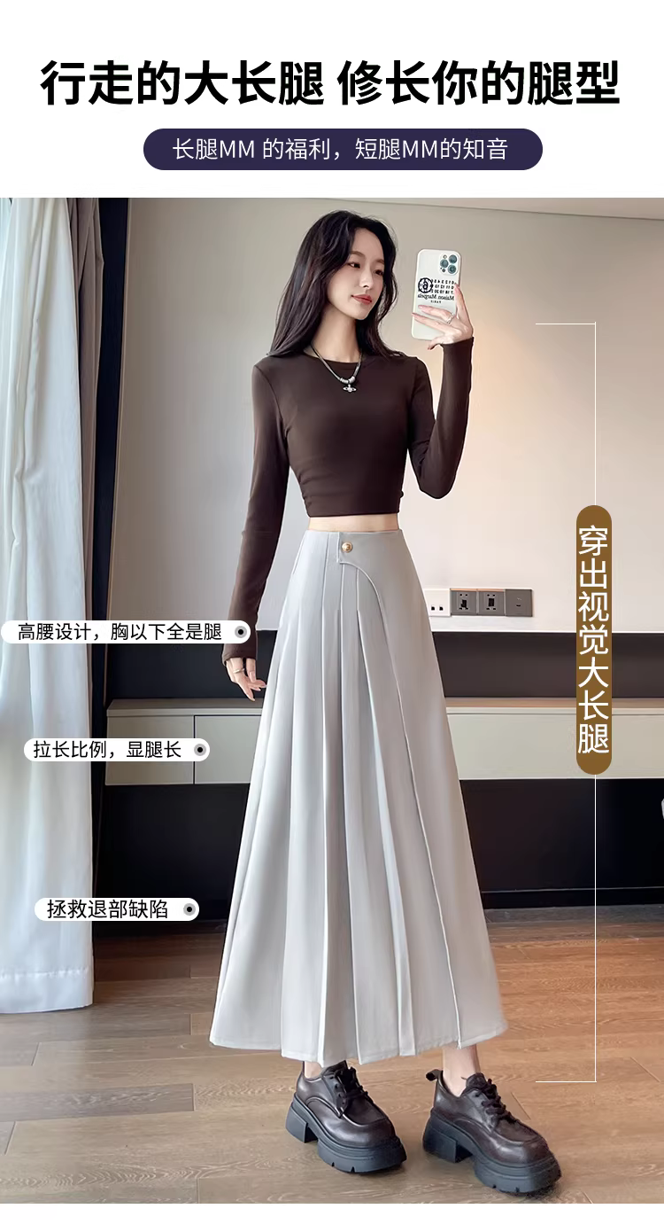 - Váy không đều dáng cho nữ, mùa xuân, mùa thu và mùa đông, váy kiểu dáng trung bình, váy xếp ly một mảnh kiểu chữ A, váy nửa thân