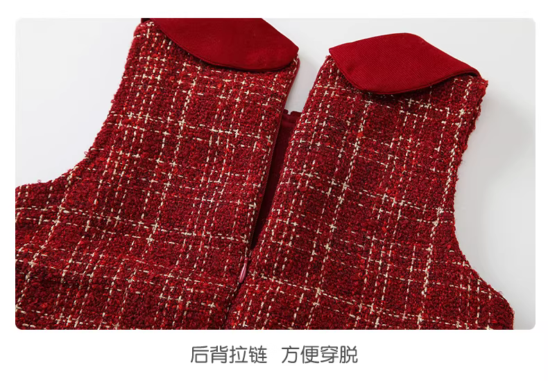 - Váy kiểu Chanel nhỏ nhắn cho bé gái, trang phục mùa đông, váy công chúa trẻ em sành điệu có lớp lót lông cừu, váy vest, váy trang trọng cho bé một tuổi, trang phục năm mới.