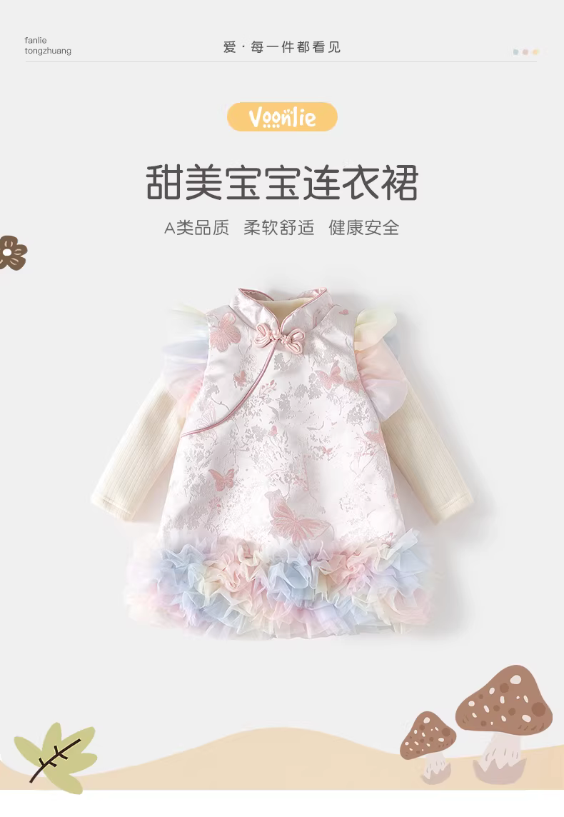 - Váy kiểu Trung Hoa dành cho bé gái, quần áo mùa đông, váy công chúa thời trang có đệm nhung và bông, váy sườn xám, váy sinh nhật đầu tiên của bé, mùa đông