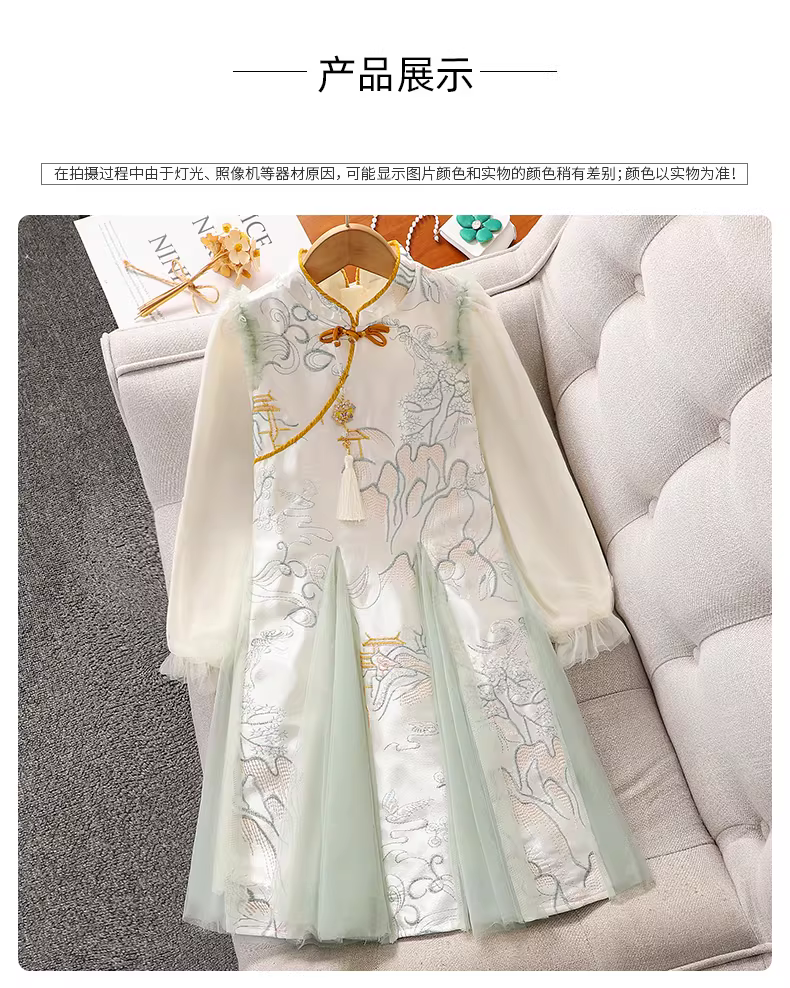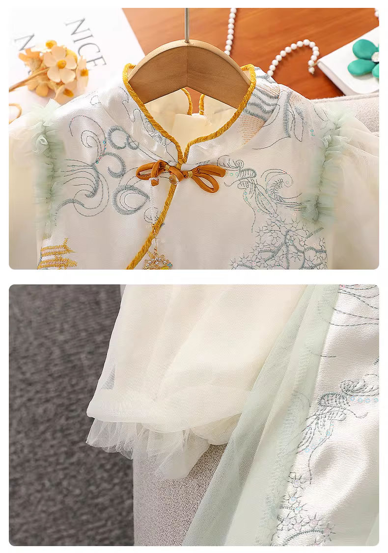 - Váy kiểu Trung Hoa mới cho bé gái mùa xuân thu, váy công chúa siêu xinh phong cách Trung Hoa, váy Hanfu trẻ em mới năm 2025.