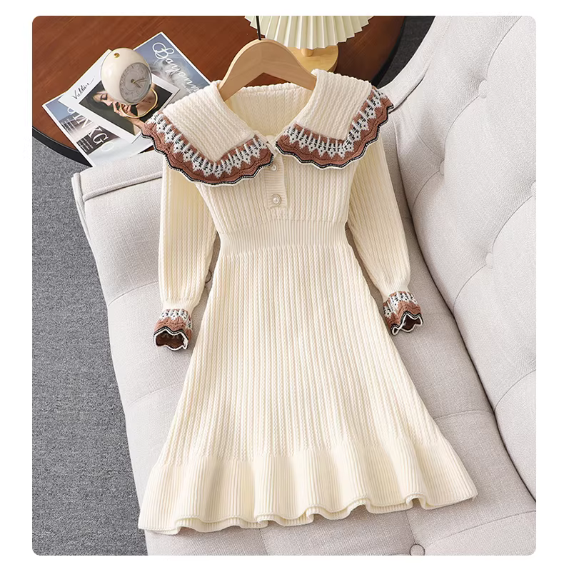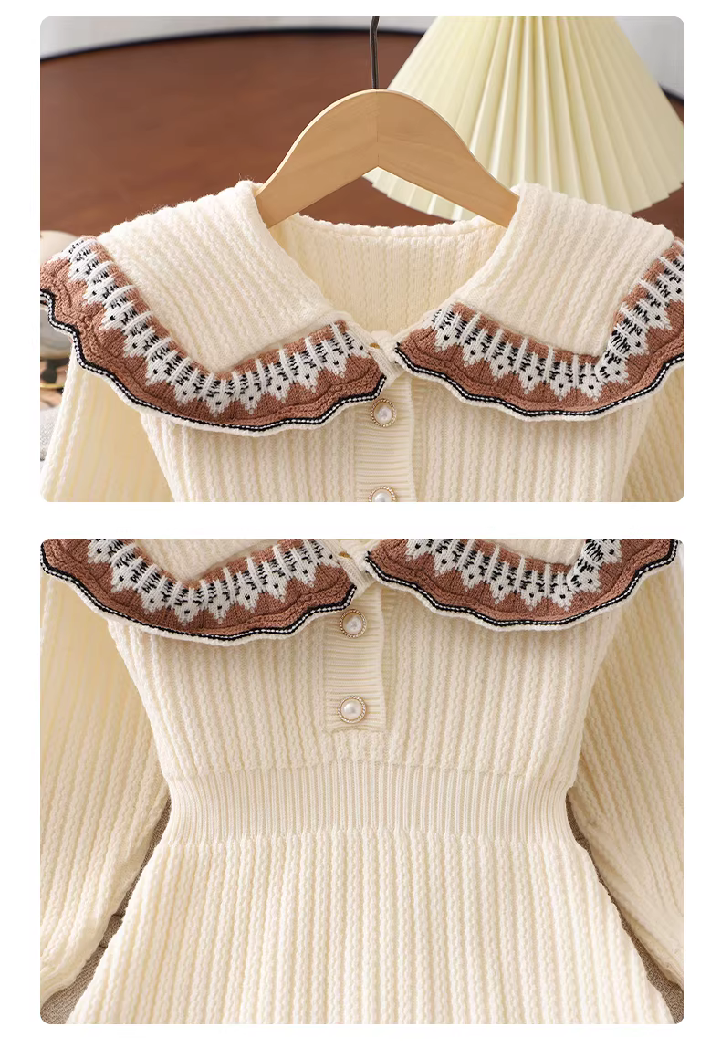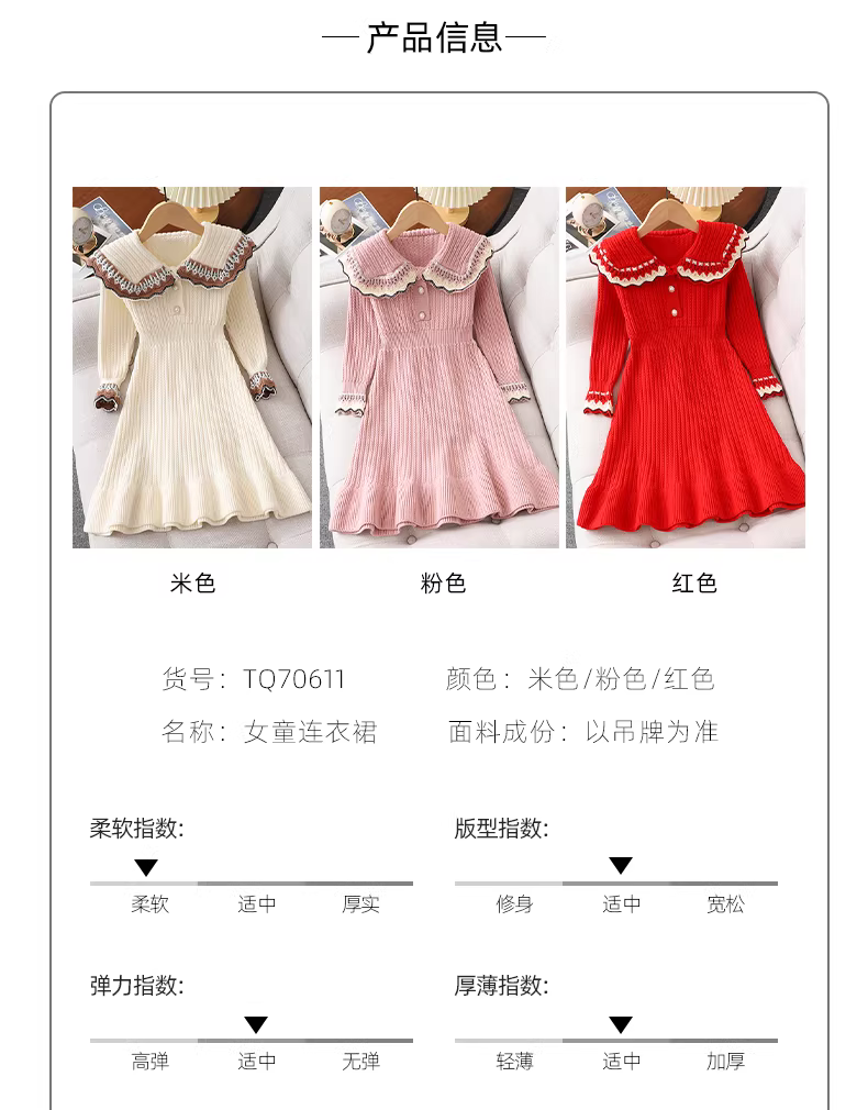 - Váy len bé gái, kiểu dáng dài thu đông, váy công chúa dệt kim sành điệu cho bé gái, váy đỏ trẻ em, trang phục năm mới.