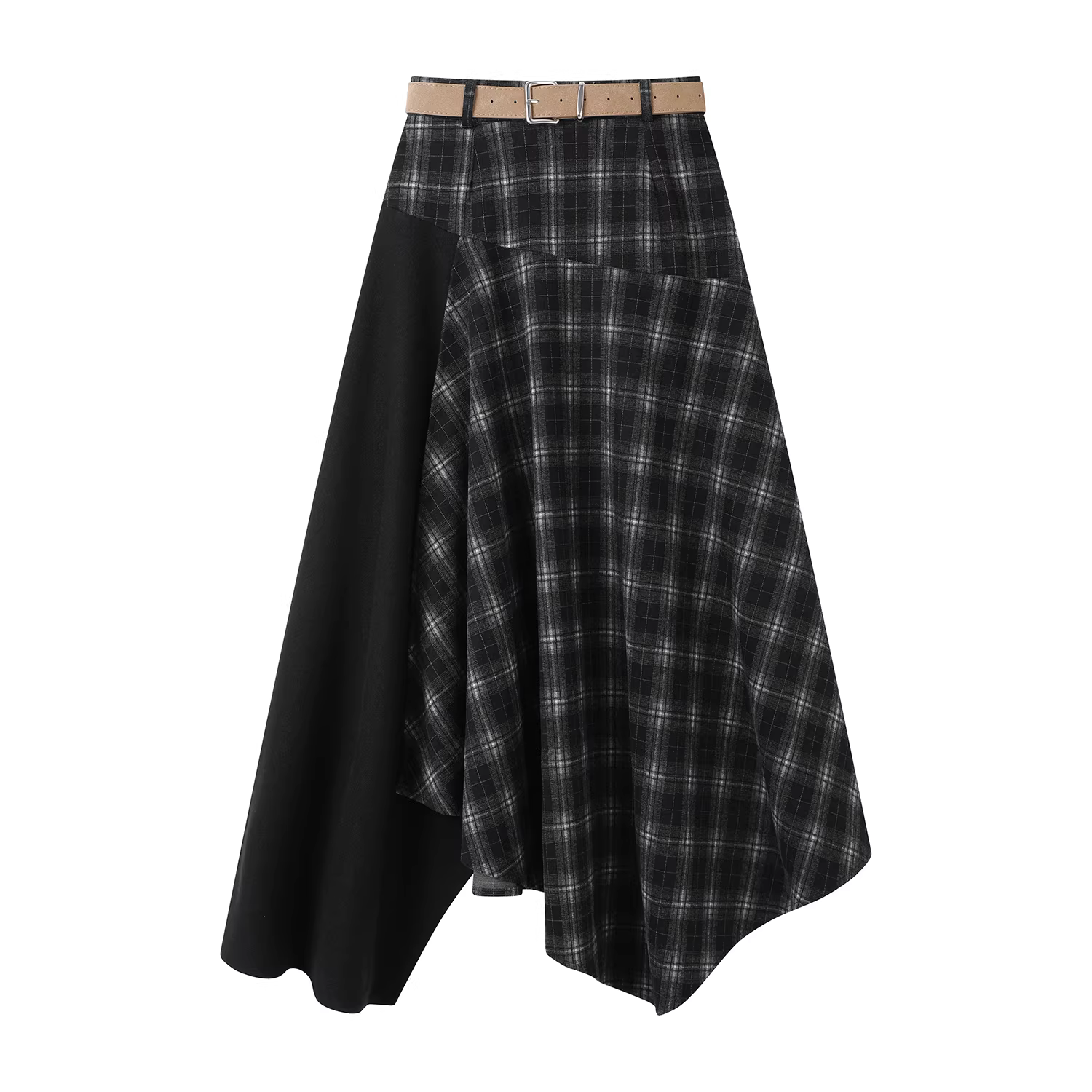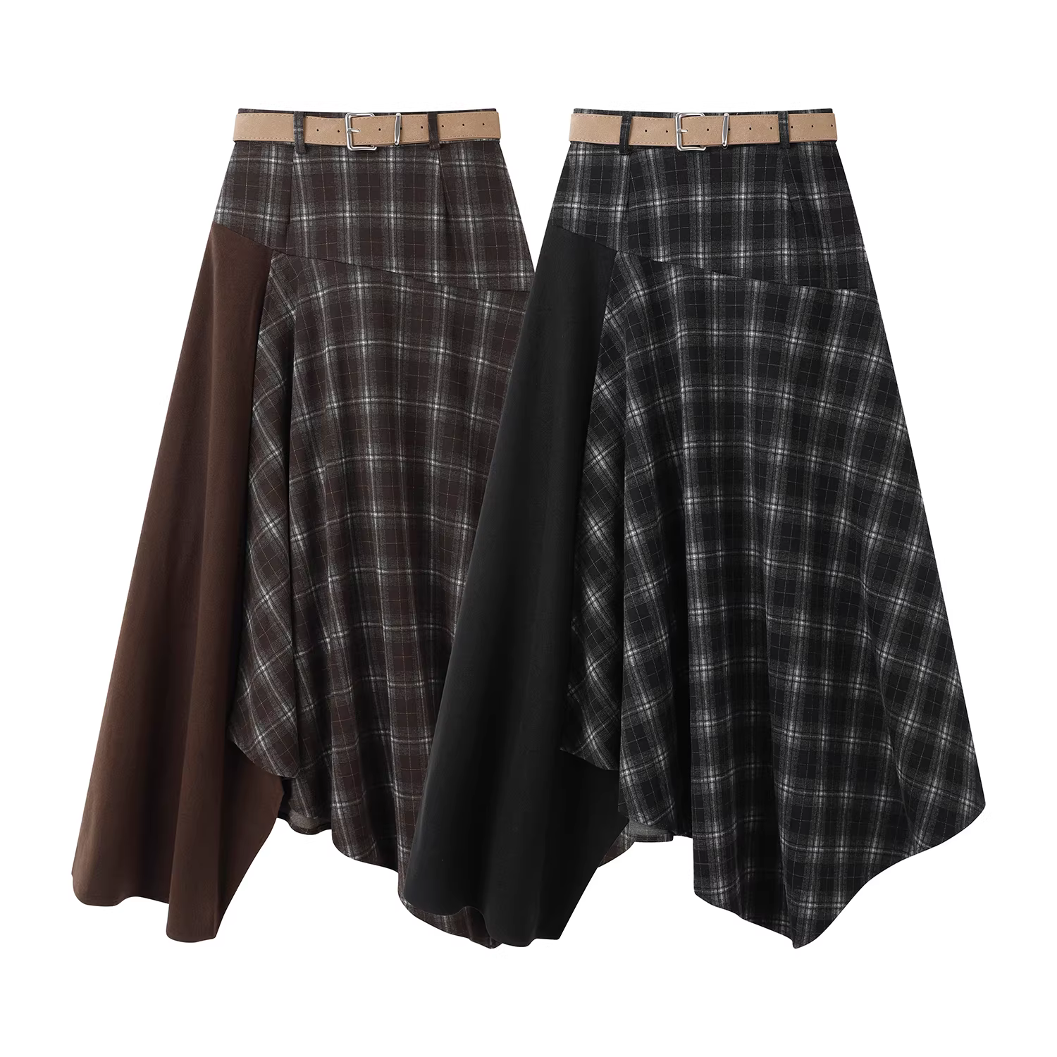 Váy len chắp vá kiểu cổ điển dành cho nữ, váy bút chì dáng chữ A cạp cao, tôn dáng cho mùa thu đông.