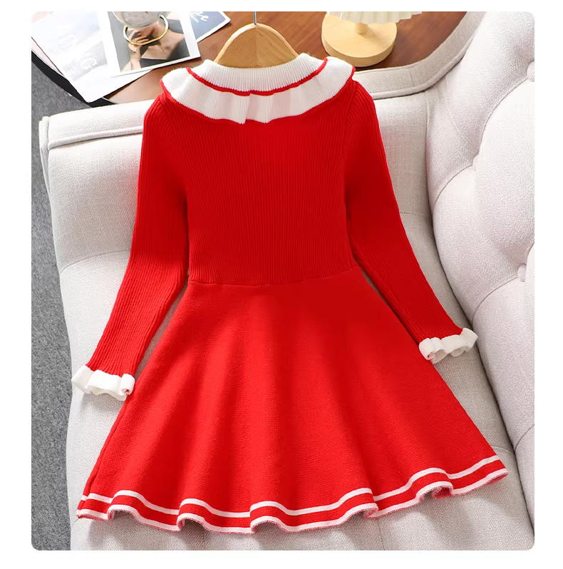- Váy len dày màu đỏ cho bé gái mùa đông 2025, váy công chúa Tết, áo len đầm cho trẻ lớn