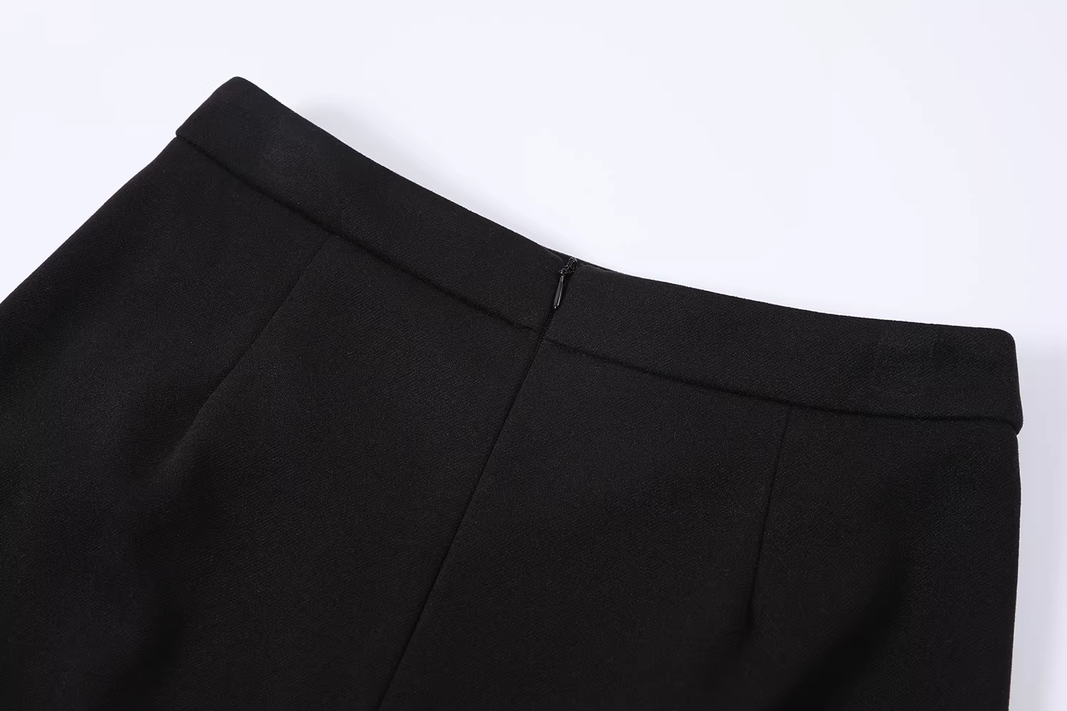 Váy len đen CuteGirl dành cho nữ, kiểu dáng ôm dáng chữ A dài trung bình, mới thu đông 2025