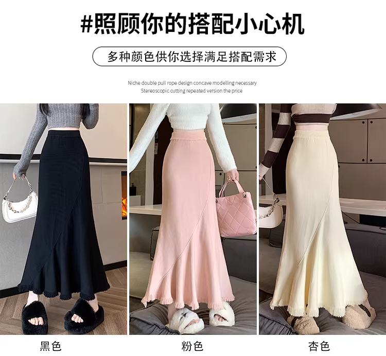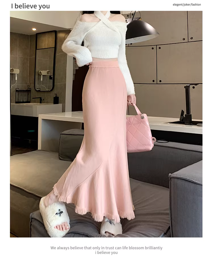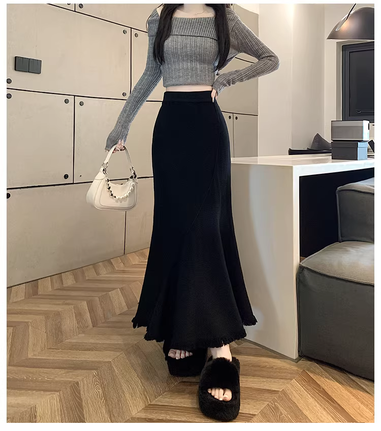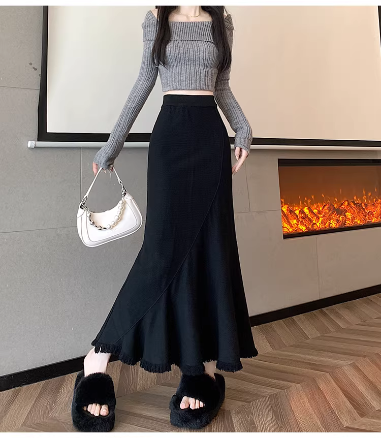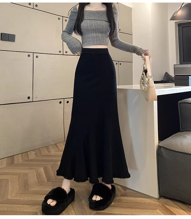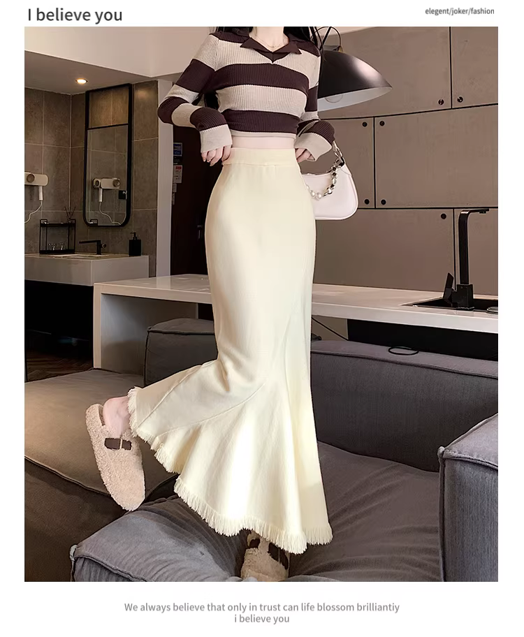 - Váy len đuôi cá tua rua La Chapelle dành cho nữ, thu đông 2025, kiểu dáng mới, cạp cao, tôn dáng, ôm body, dáng chữ A