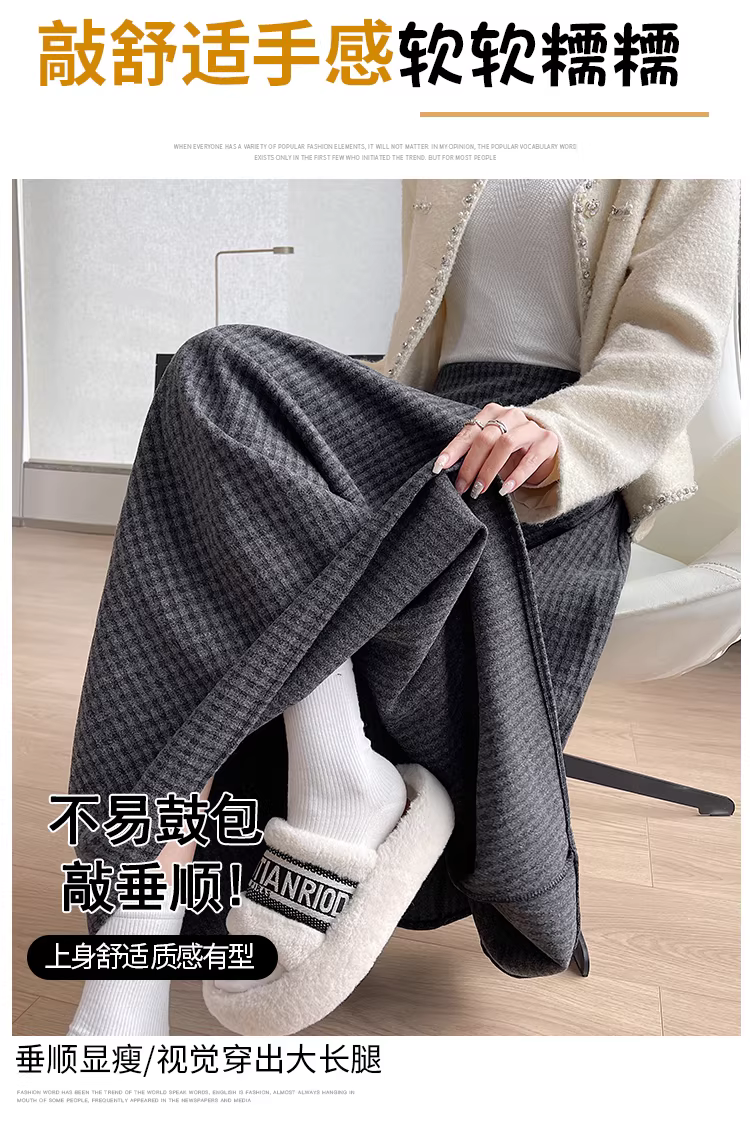 Váy len kẻ sọc cho nữ, váy dù dài vừa mùa đông, váy len xếp ly, váy kẻ sọc, váy dài lưng cao