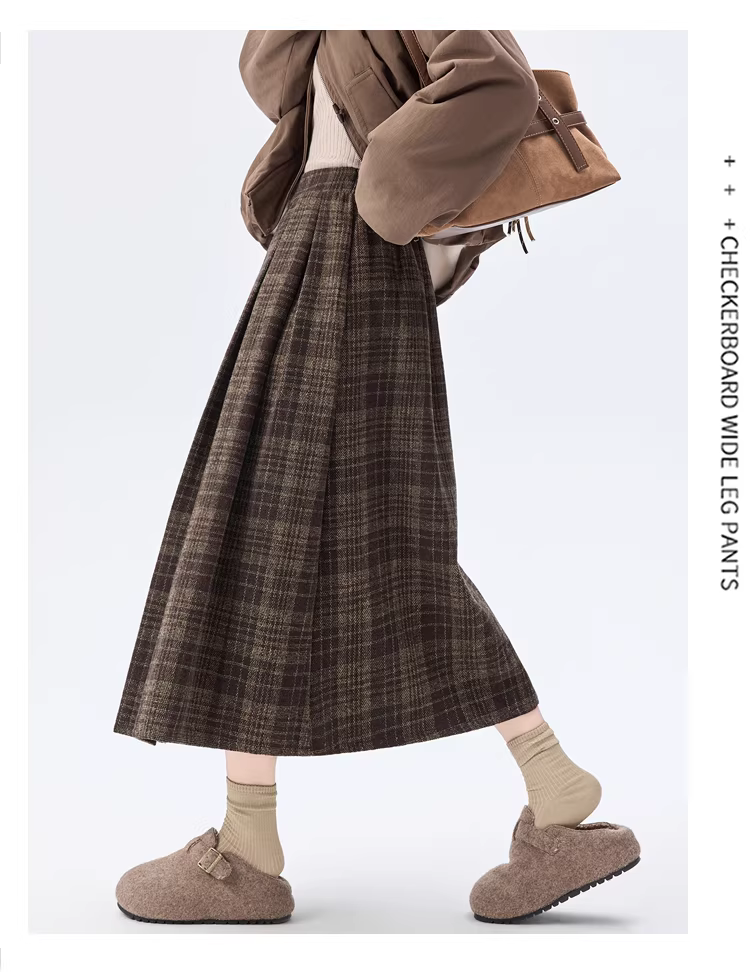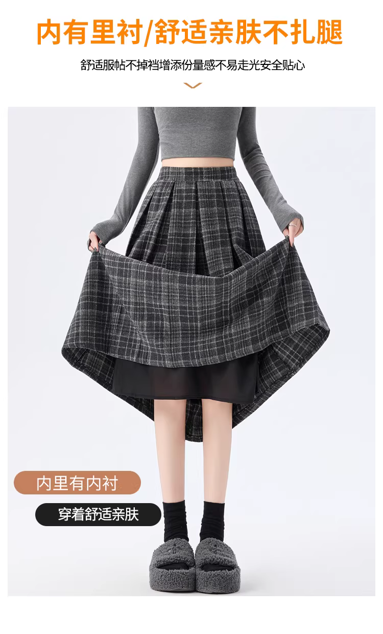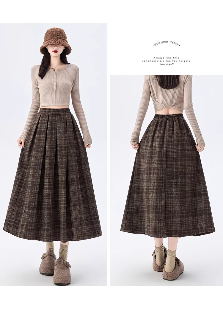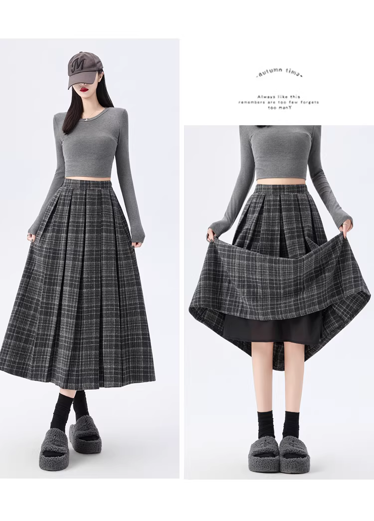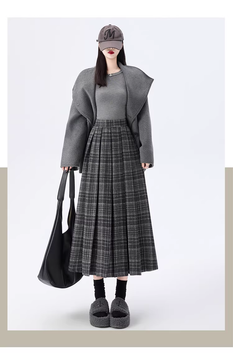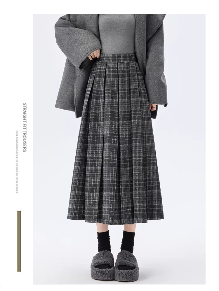 - Váy len kẻ sọc màu xám La Chapelle dành cho nữ 2025 mới thu đông dáng nhỏ eo cao tôn dáng dài