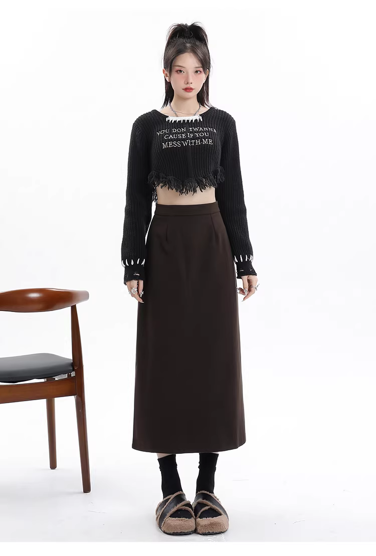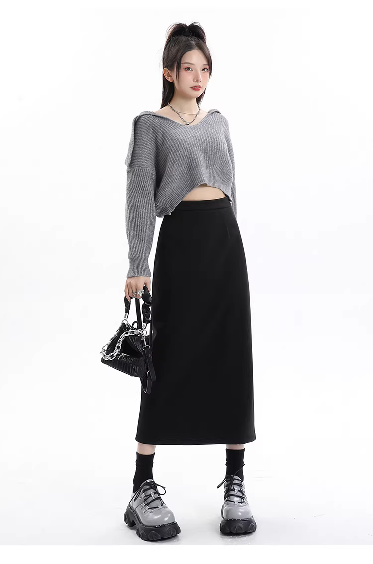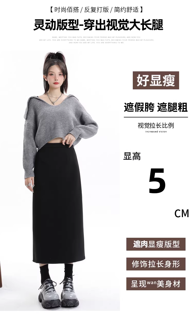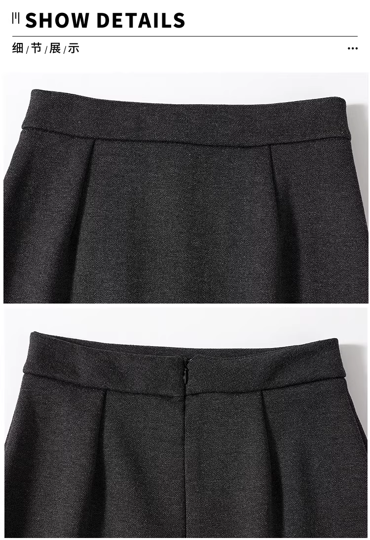 - Váy len lót lông cừu đen La Chapelle dành cho nữ, váy dài ngang đùi xẻ tà cao cấp mùa thu đông 2025