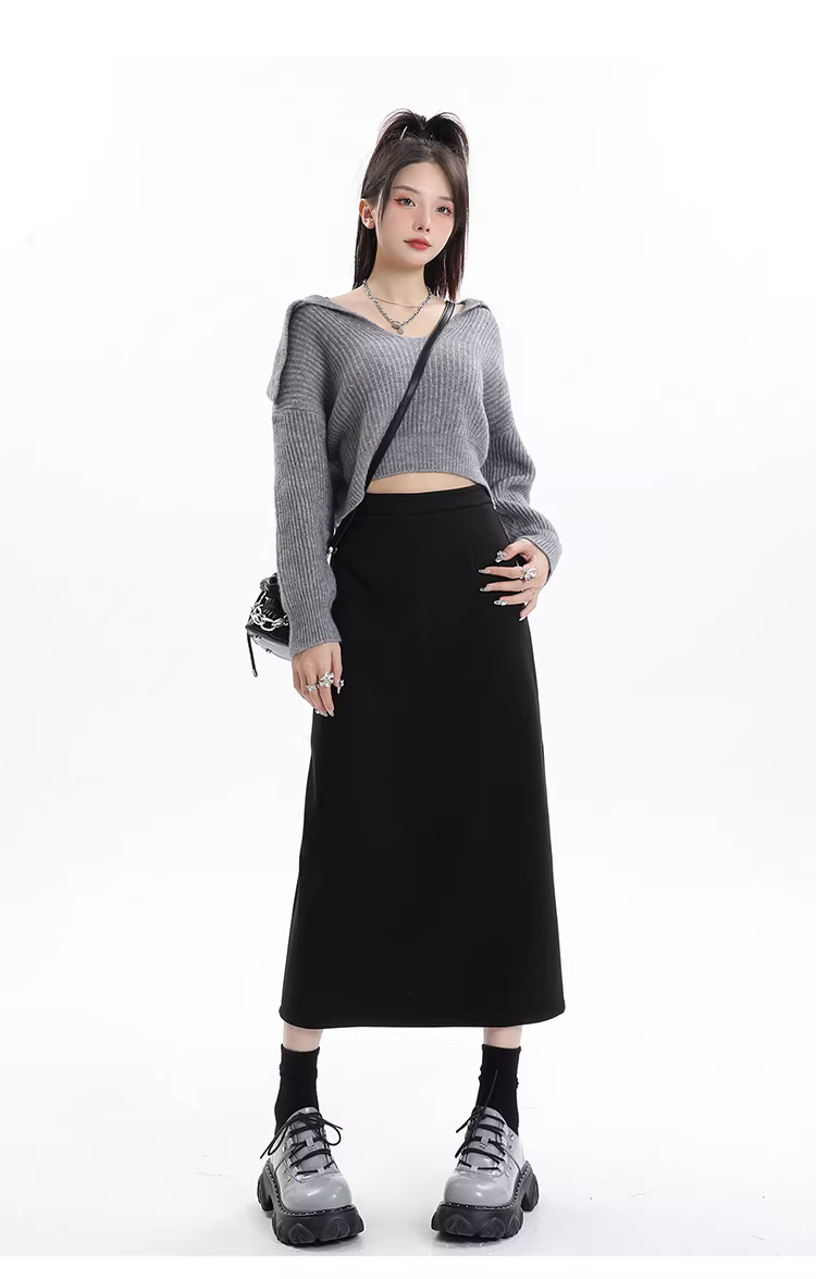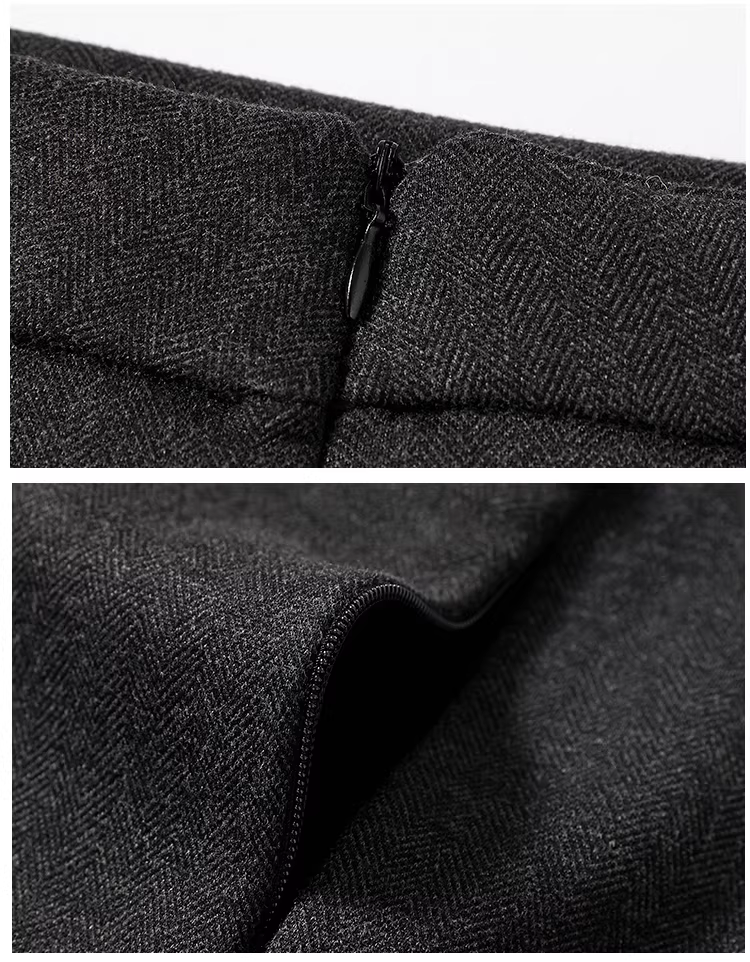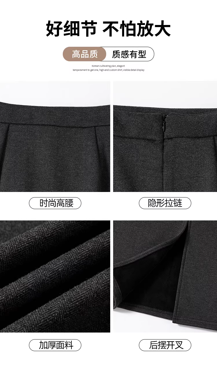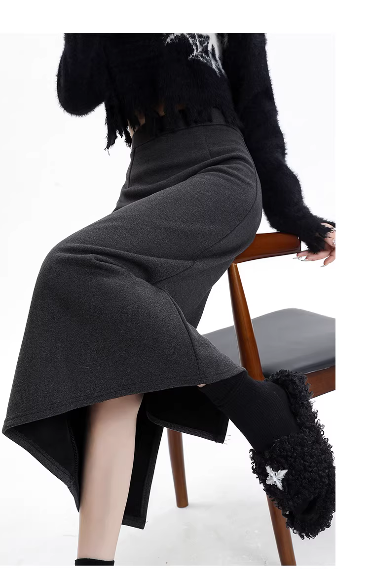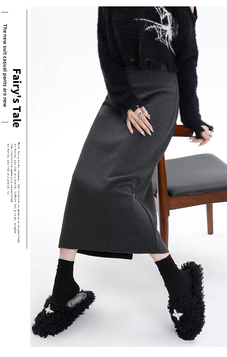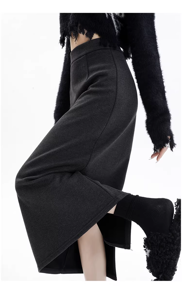 - Váy len lót lông màu xám La Chapelle dành cho nữ, váy dài ngang hông xẻ tà cao cấp mùa thu đông 2025