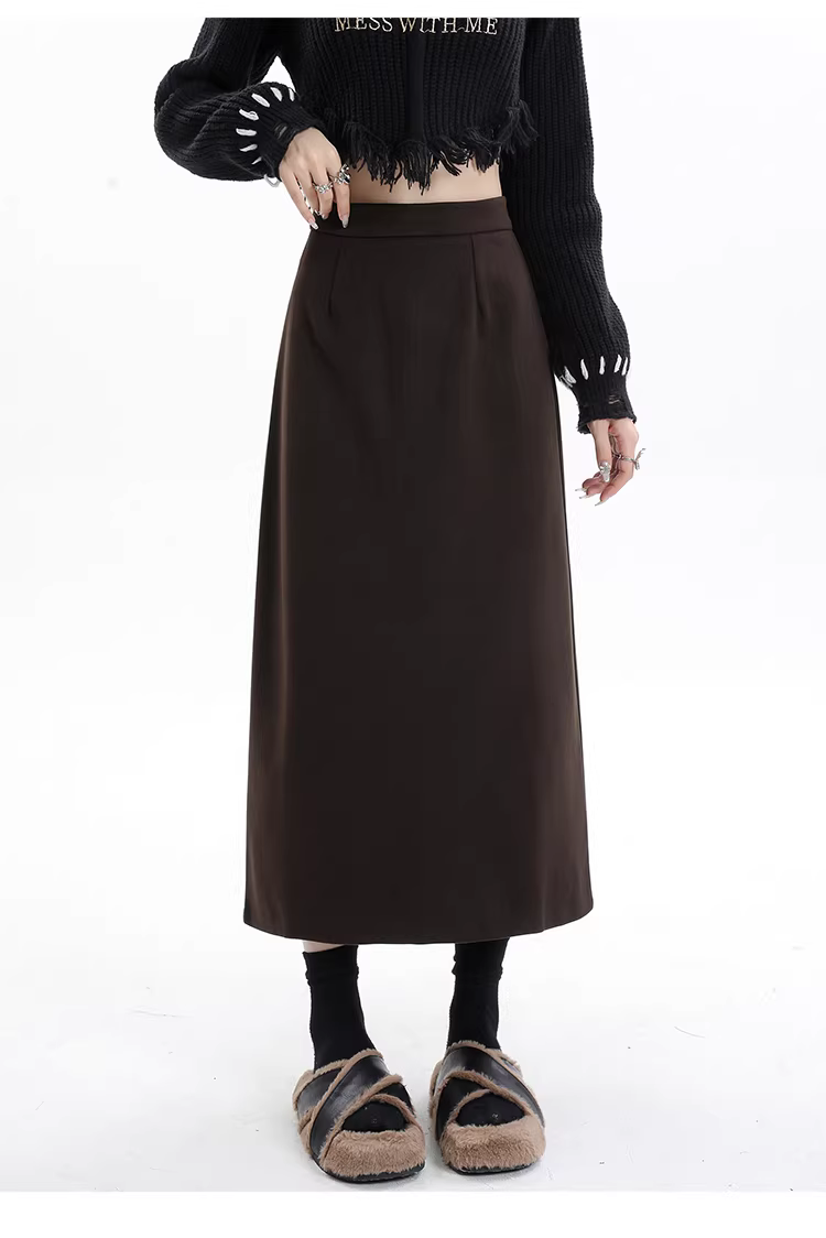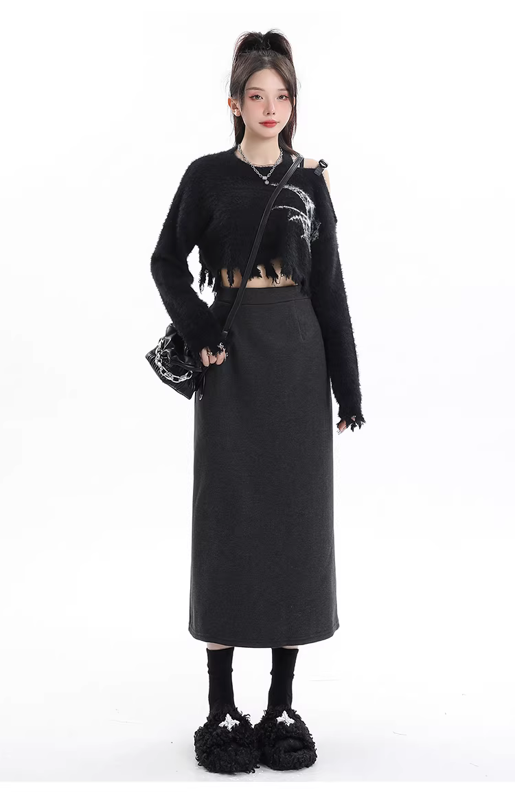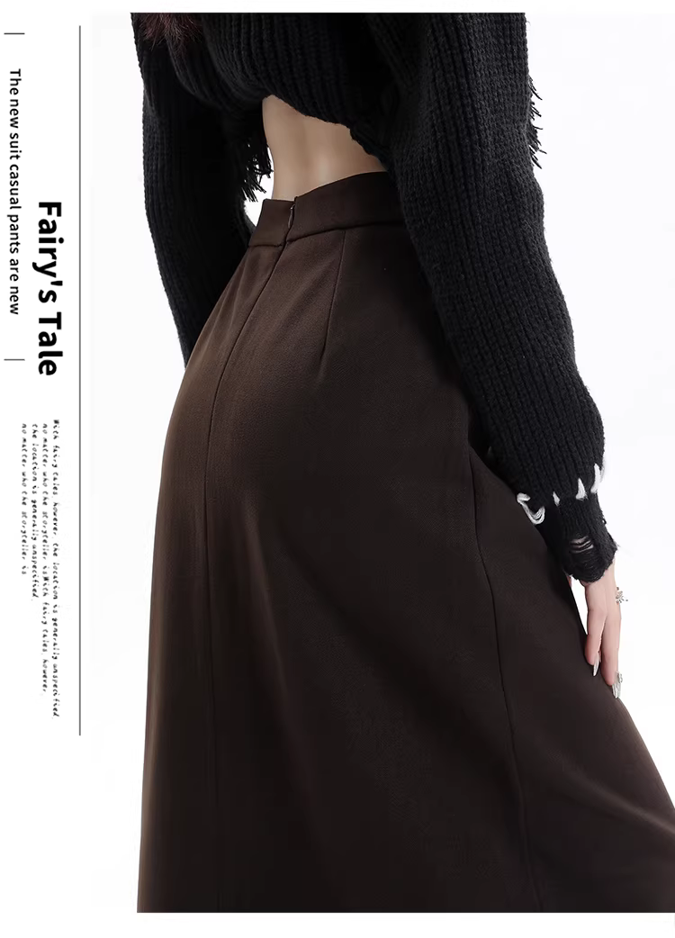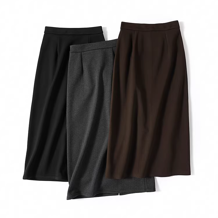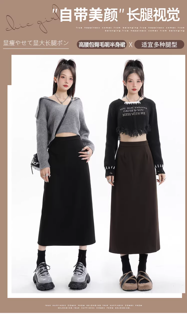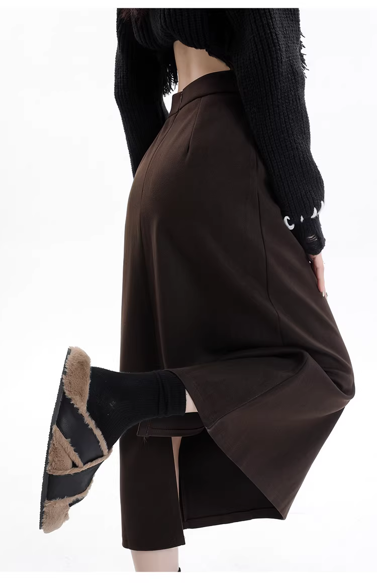 - Váy len lót lông màu xám La Chapelle dành cho nữ, váy dài ngang hông xẻ tà cao cấp mùa thu đông 2025