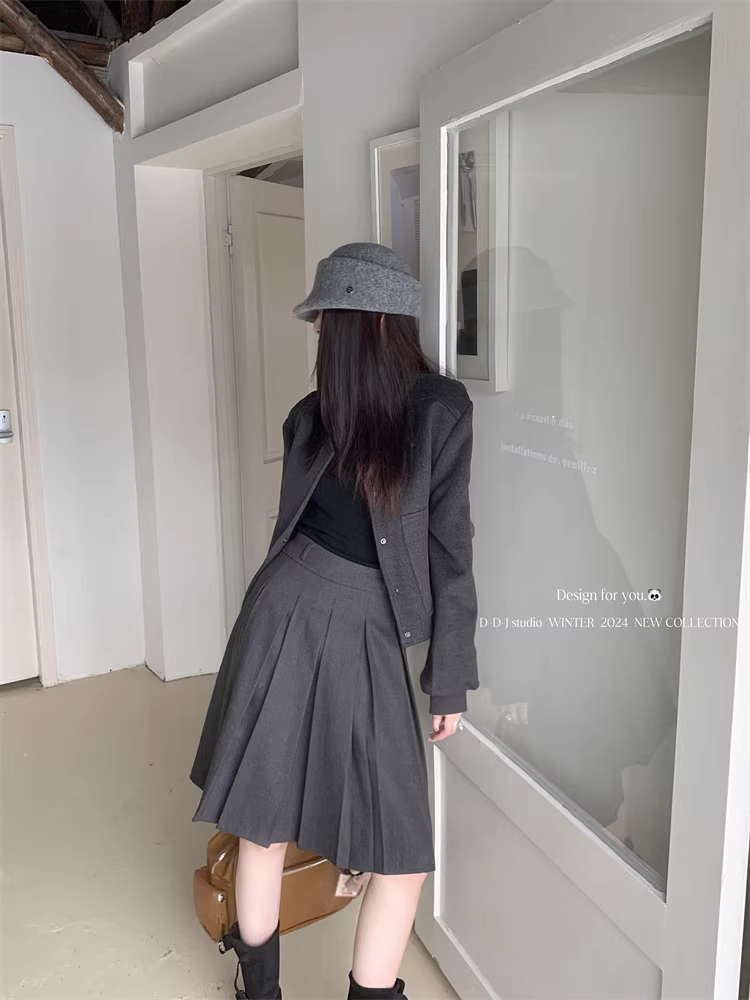 Váy len màu xám cho nữ, váy len xếp ly dài trung bình mùa thu đông, váy len rất đẹp, váy len dài