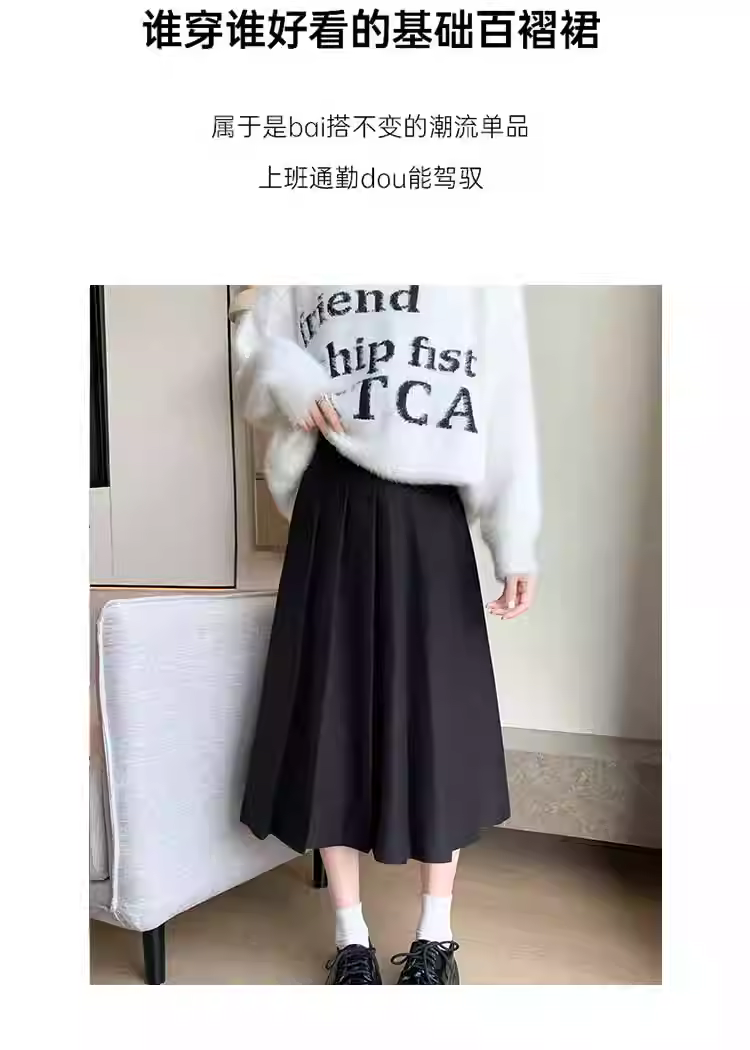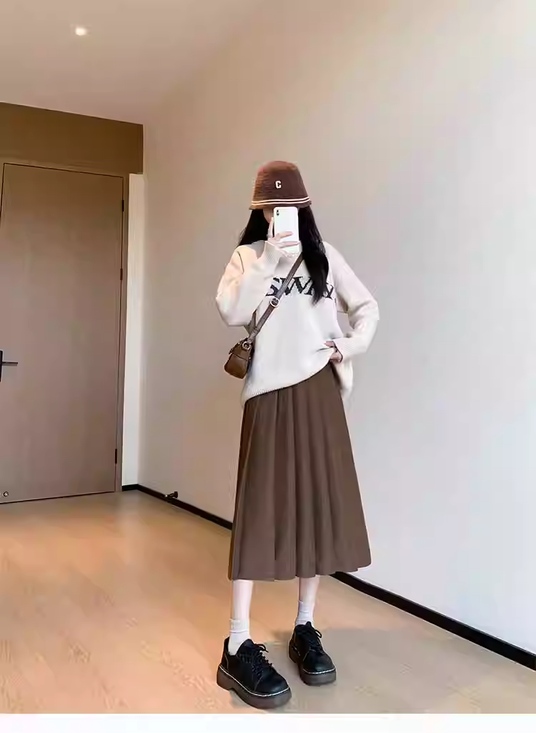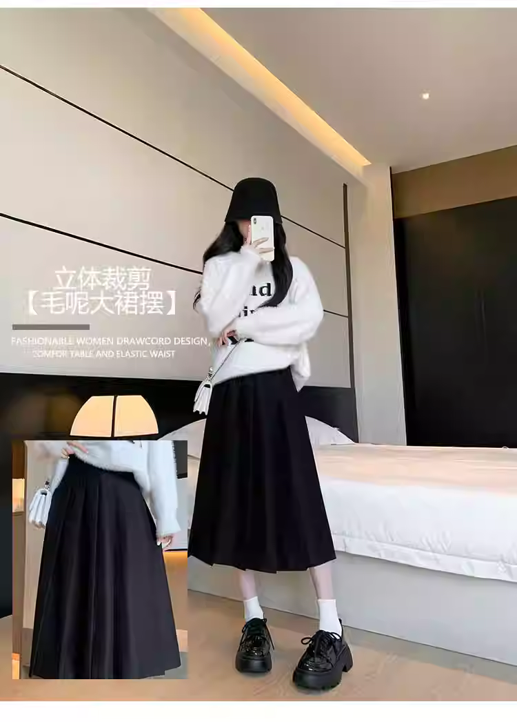 - Váy len màu xám cho nữ, váy len xếp ly dài vừa phải mùa đông, váy chữ A, váy dù, phối cùng áo len, váy dài