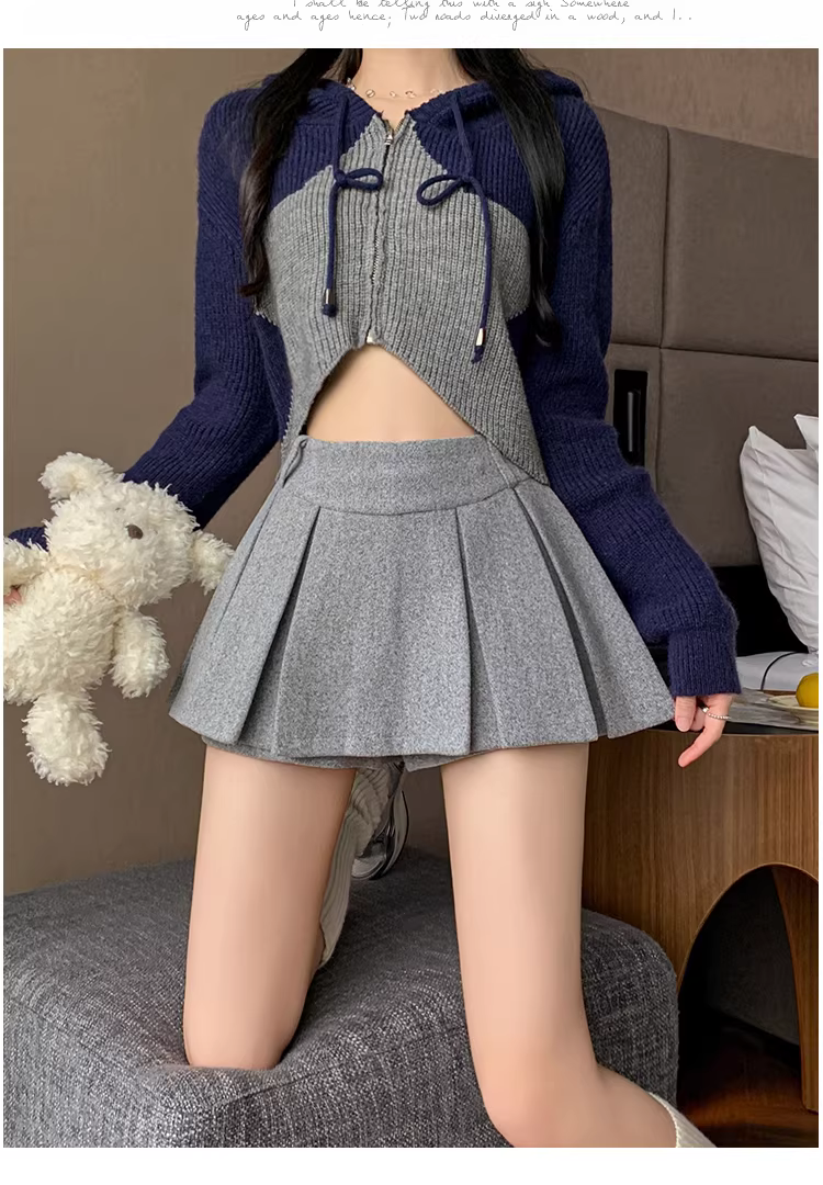 - Váy len màu xám cho nữ, váy len xếp ly mùa thu đông, váy rất đẹp, váy Jjk, váy siêu ngắn lưng cao