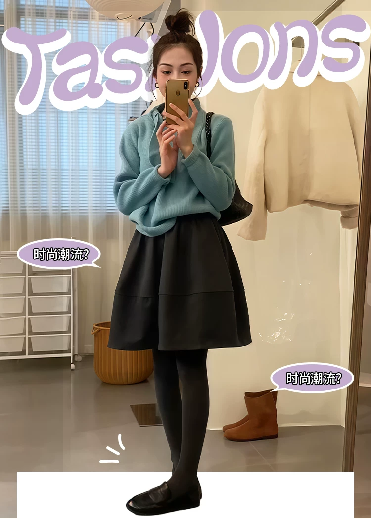 - Váy len màu xám dành cho nữ, mùa thu đông, cỡ lớn, lưng cao, váy chữ A dáng ôm, váy ngắn dáng bồng hoa nụ năm cánh.