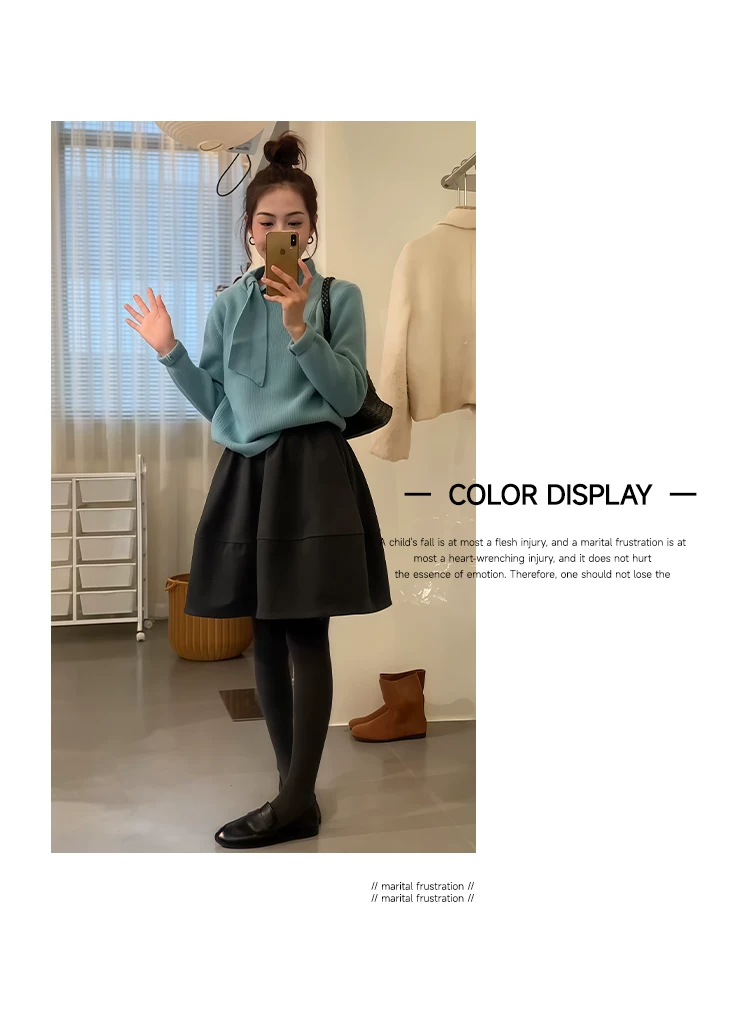 Váy len màu xám dành cho nữ, mùa thu đông, cỡ lớn, lưng cao, váy chữ A dáng ôm, váy ngắn dáng bồng hoa nụ năm cánh.
