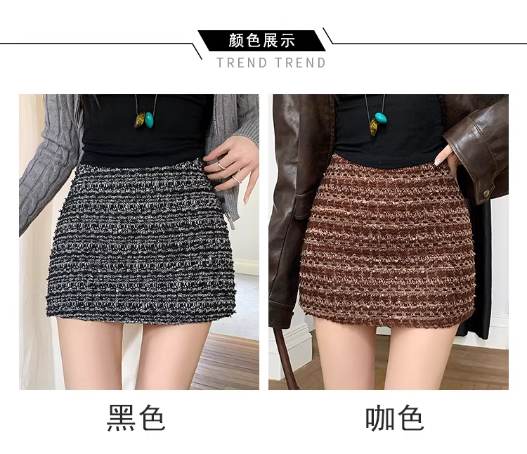 Váy len màu xám dành cho nữ, mùa thu đông, váy bút chì kiểu Chanel, váy đen nhỏ, váy ngắn len rất đẹp.
