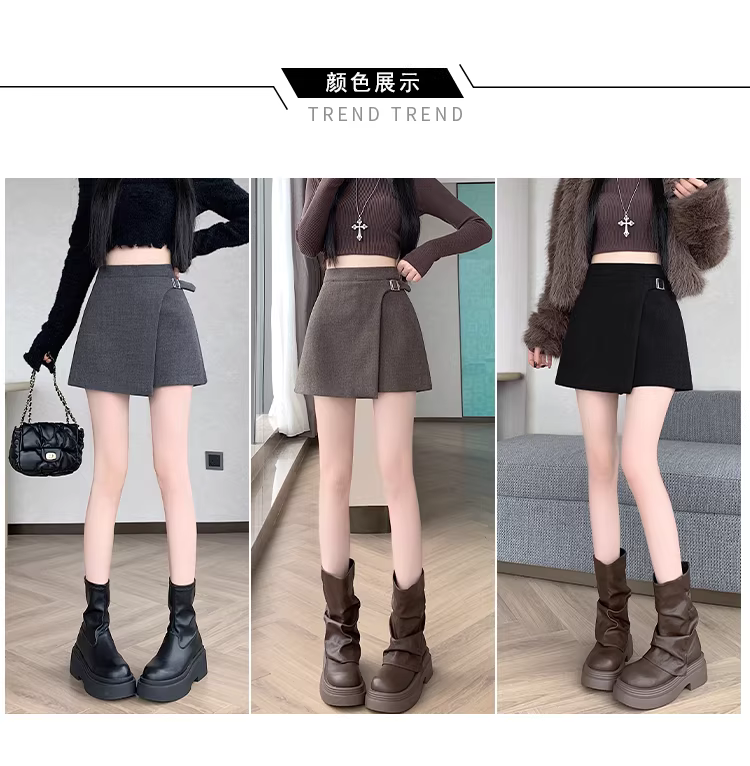- Váy len màu xám dành cho nữ, mùa thu đông, váy quần dáng bất quy tắc, váy len giả hai mảnh liền thân, váy chữ A, váy ngắn.