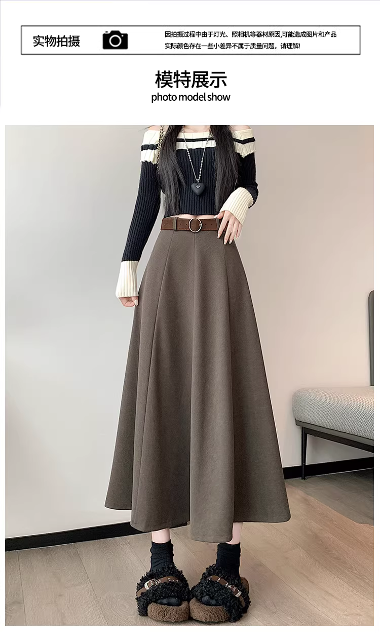 Váy len màu xám dành cho nữ, váy dù dài vừa phải mùa thu đông, váy len chữ A rất đẹp, váy dài.