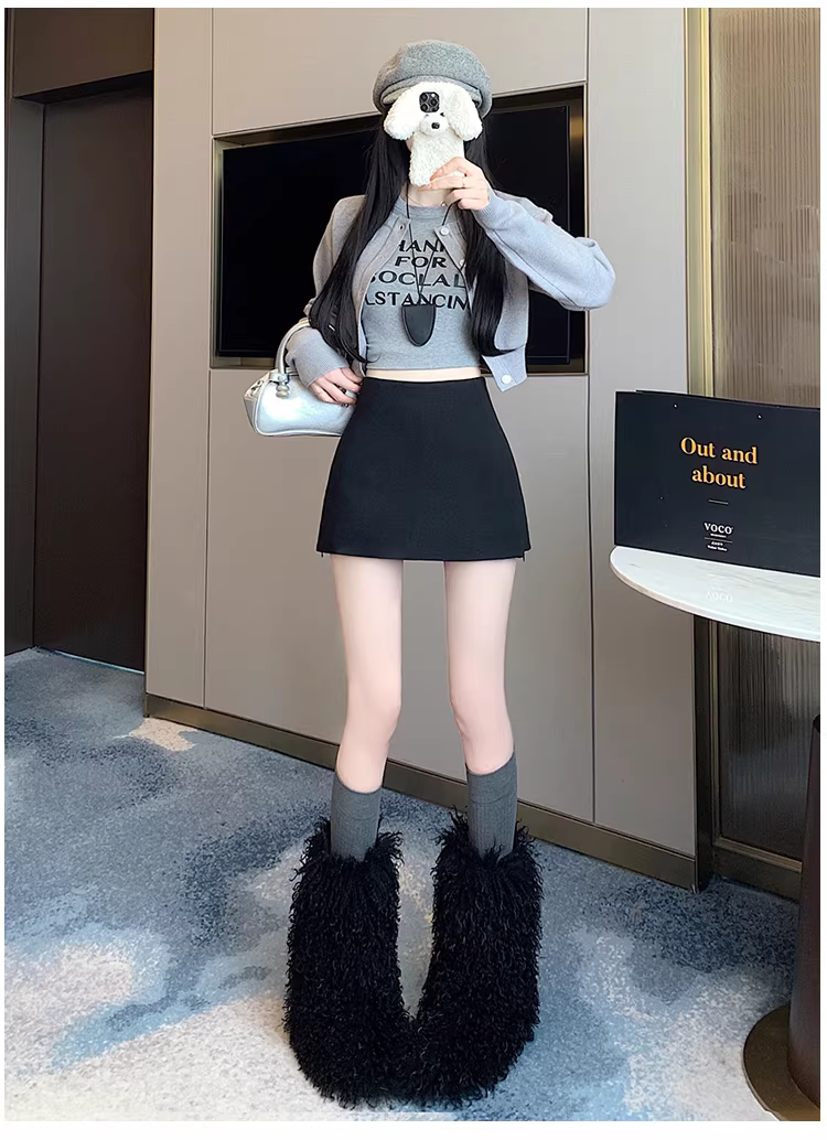 - Váy len màu xám dành cho nữ, váy len thu đông quần váy hai trong một có đường xẻ, váy ôm hông, váy bút chì, váy ngắn