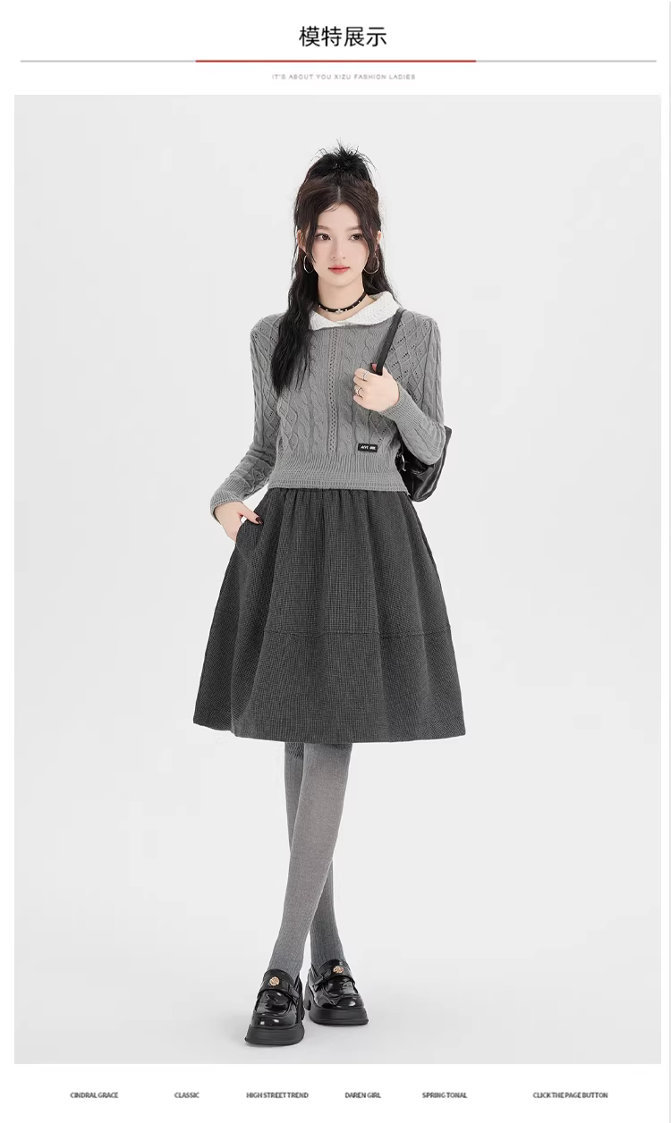 Váy len màu xám dành cho nữ, váy tutu dài vừa phải mùa thu đông, váy dù lưng cao, váy rất đẹp phối cùng áo len, váy dài vừa phải