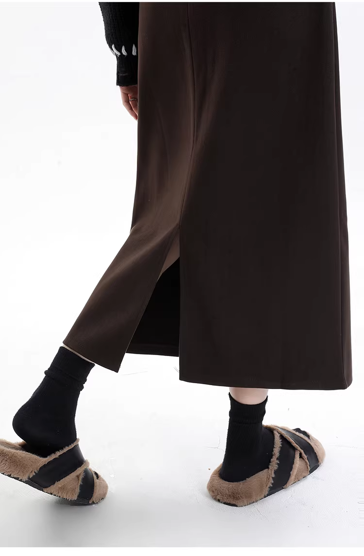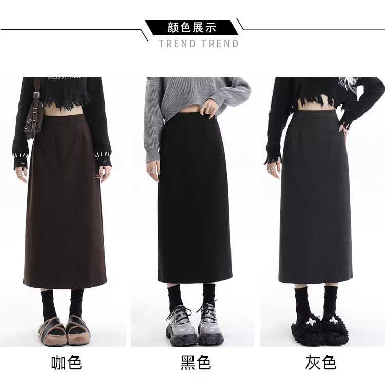 - Váy len màu xám La Chapelle có lớp lót lông cừu, dày dặn, váy dài ngang đùi, cạp cao, dáng xòe, dành cho nữ, mùa thu đông 2025.