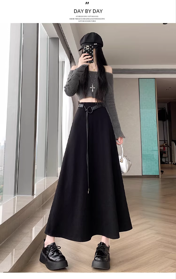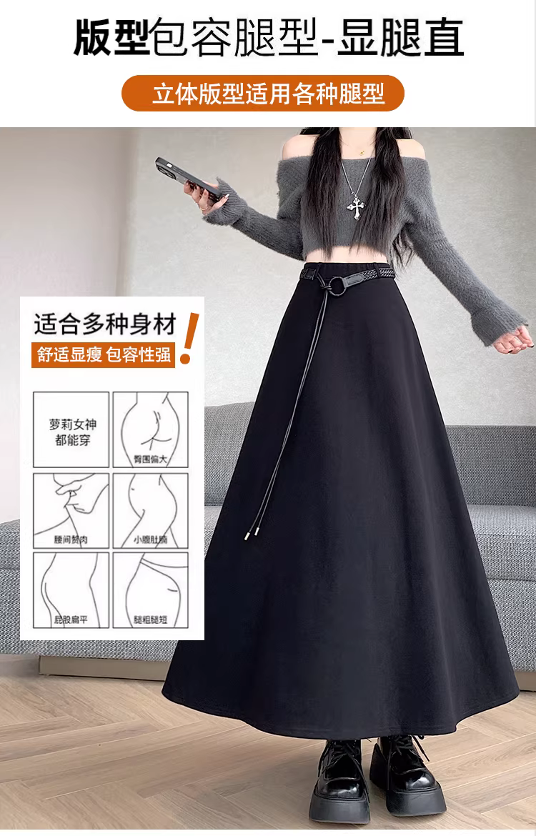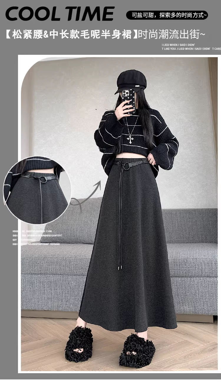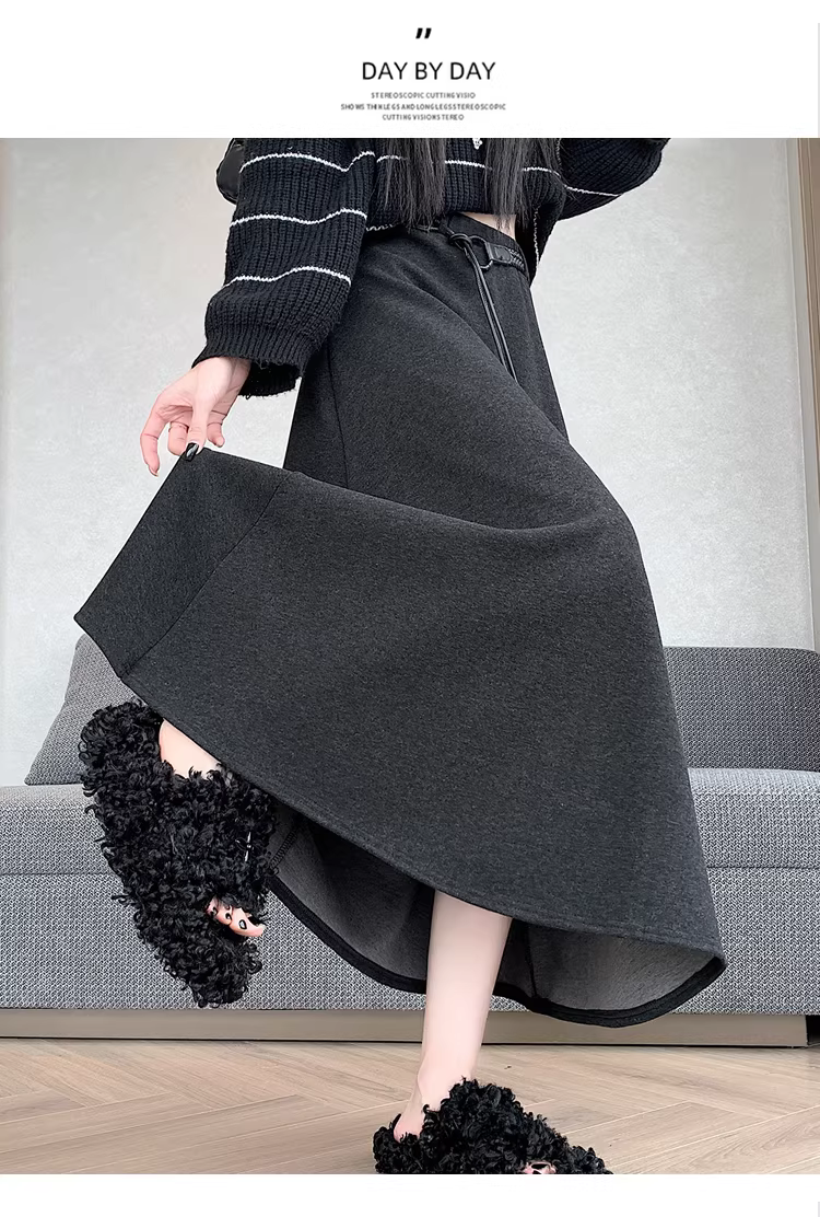 - Váy len màu xám La Chapelle dành cho nữ 2025, kiểu dáng mới thu đông, cạp cao, dáng chữ A, dài ngang đùi, kiểu dáng ôm dáng.
