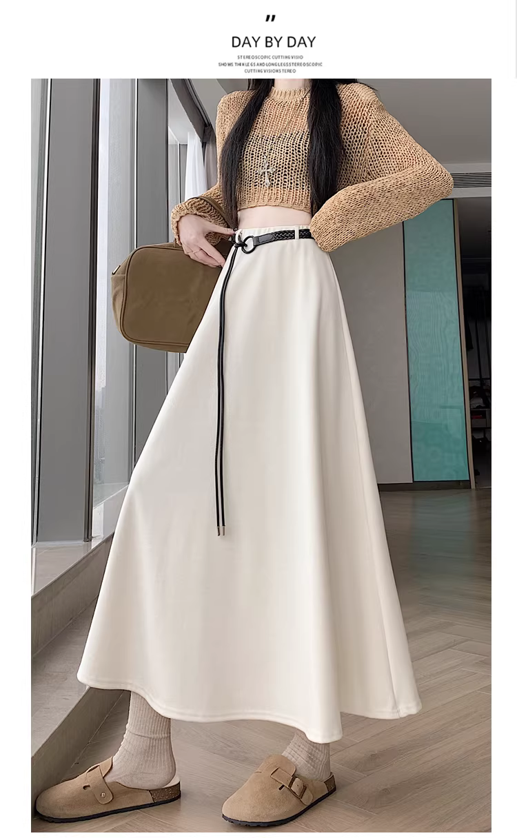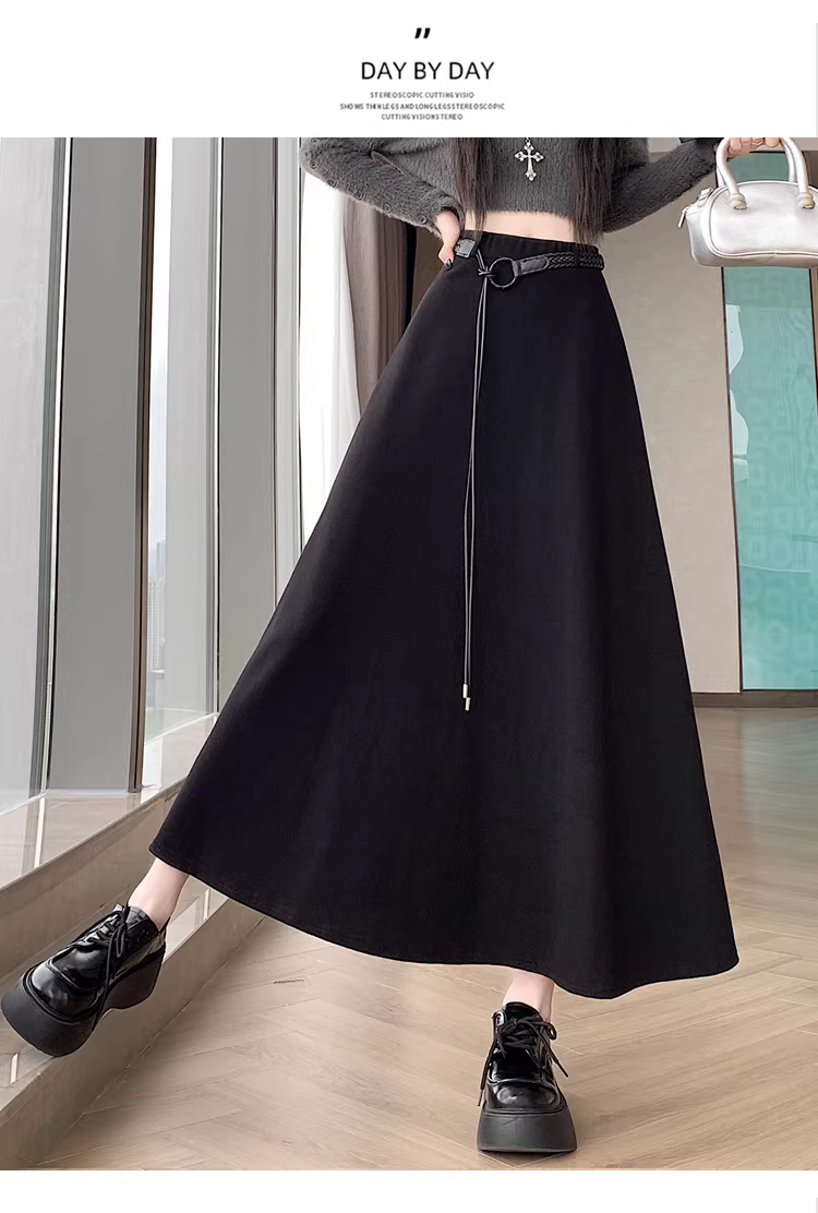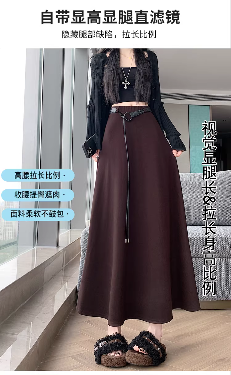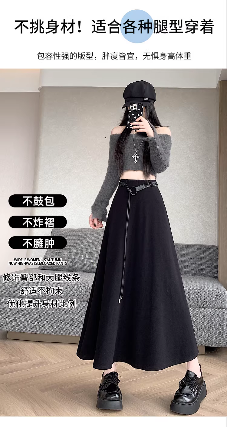 - Váy len màu xám La Chapelle dành cho nữ 2025, kiểu dáng mới thu đông, cạp cao, dáng chữ A, dài ngang đùi, kiểu dáng ôm dáng.