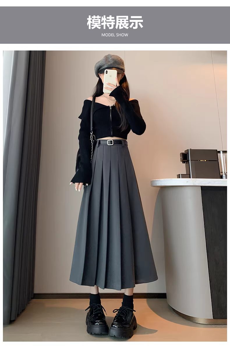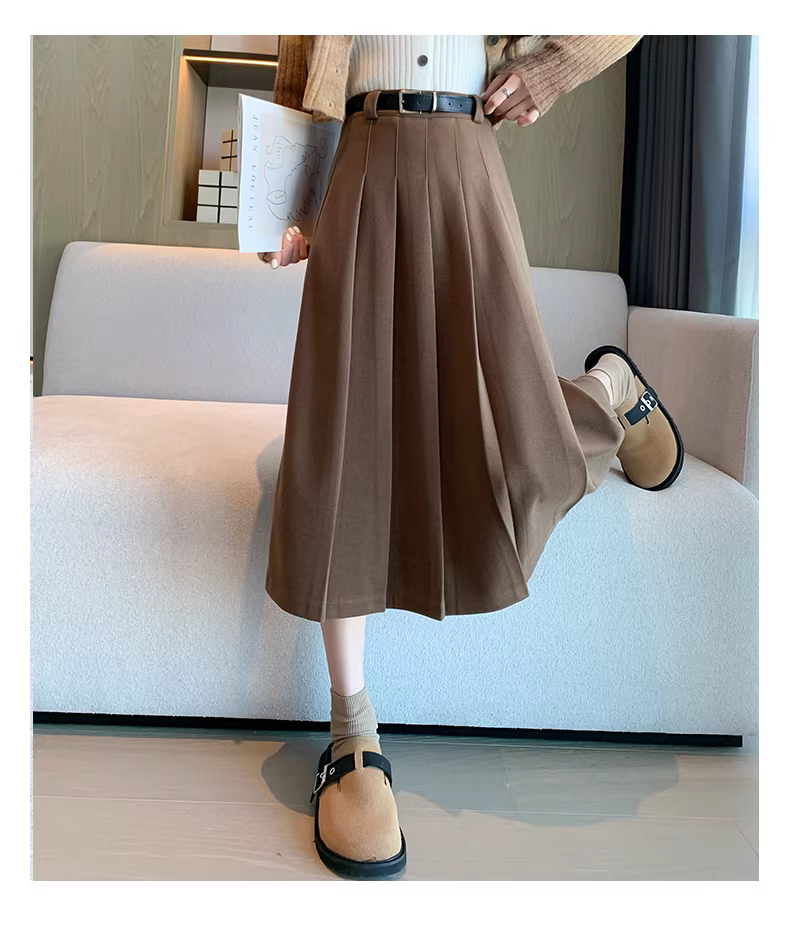 - Váy len màu xám La Chapelle dành cho nữ, mẫu mới thu 2025, đa năng, cạp cao, dáng chữ A, dài ngang đùi