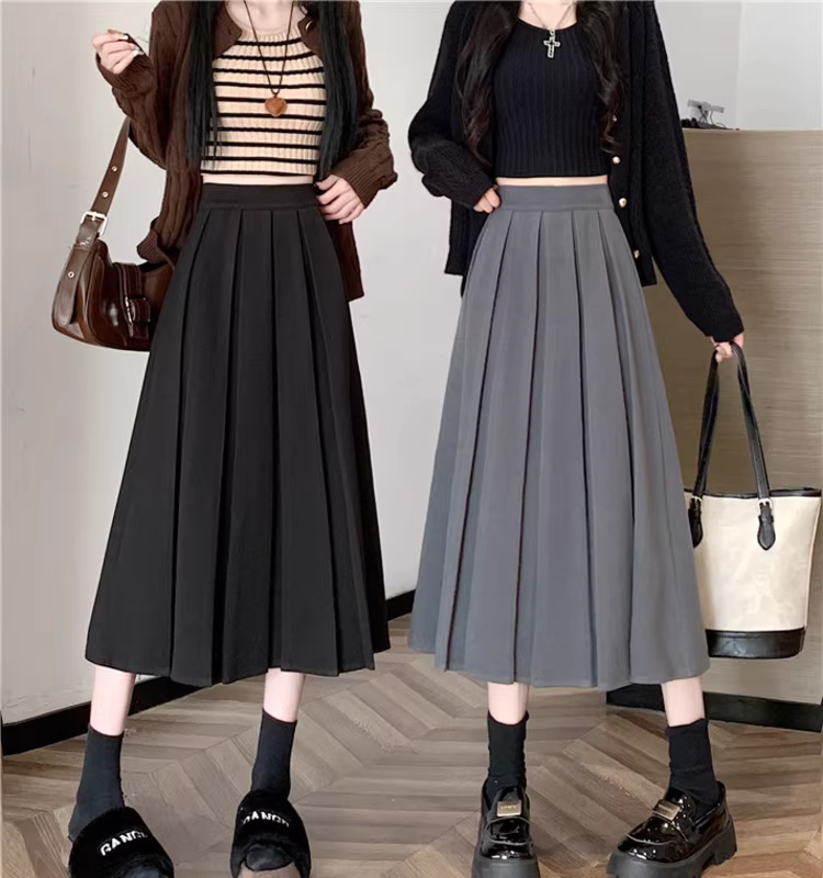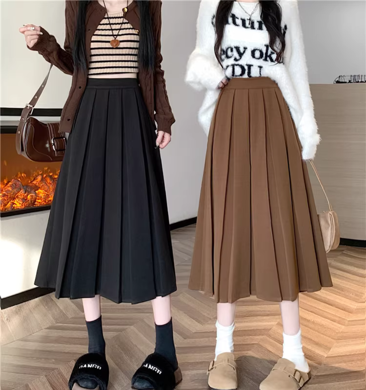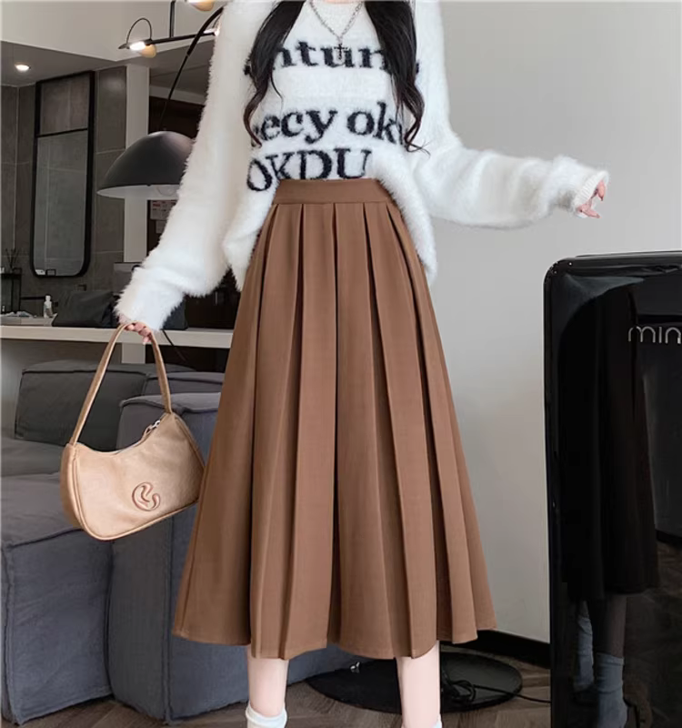 Váy len nữ, váy xếp ly dài trung bình mùa thu đông, váy chữ A rất đẹp, váy dài.