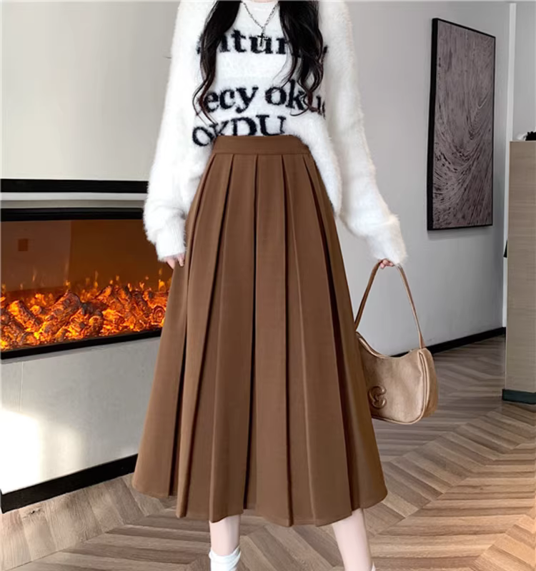 - Váy len nữ, váy xếp ly dài trung bình mùa thu đông, váy chữ A rất đẹp, váy dài.