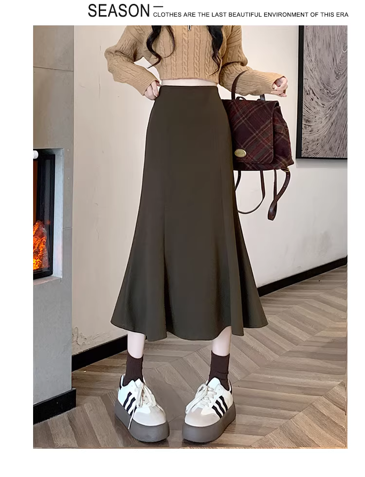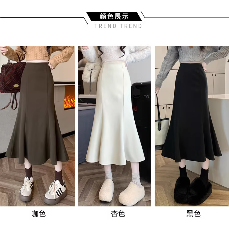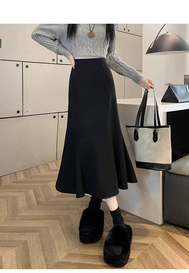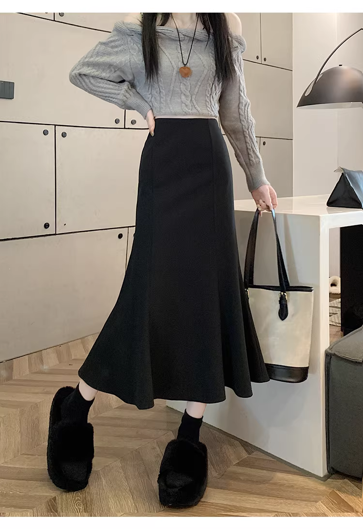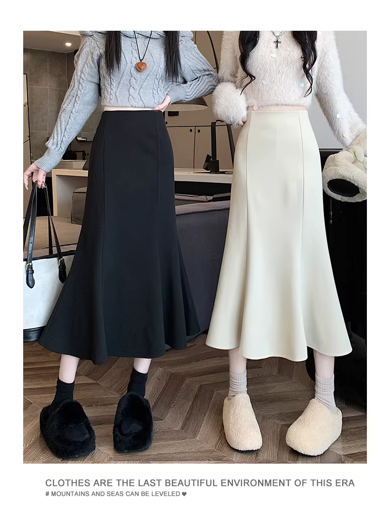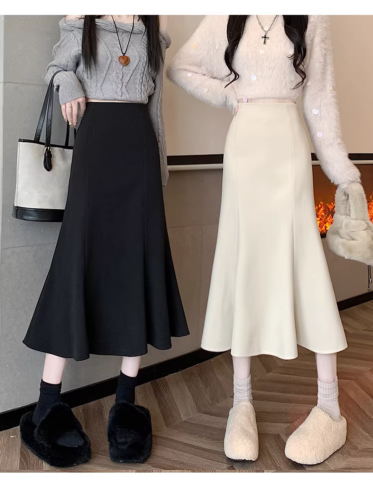 - Váy len trắng La Chapelle dành cho nữ, mùa thu đông 2025, kiểu dáng mới, cạp cao, dáng chữ A, đuôi cá, ôm sát, dài ngang đùi