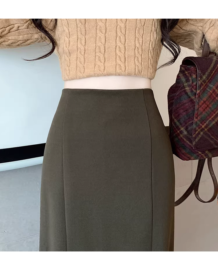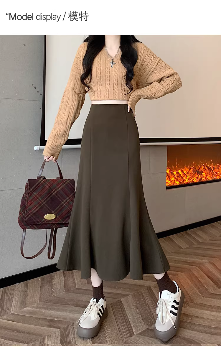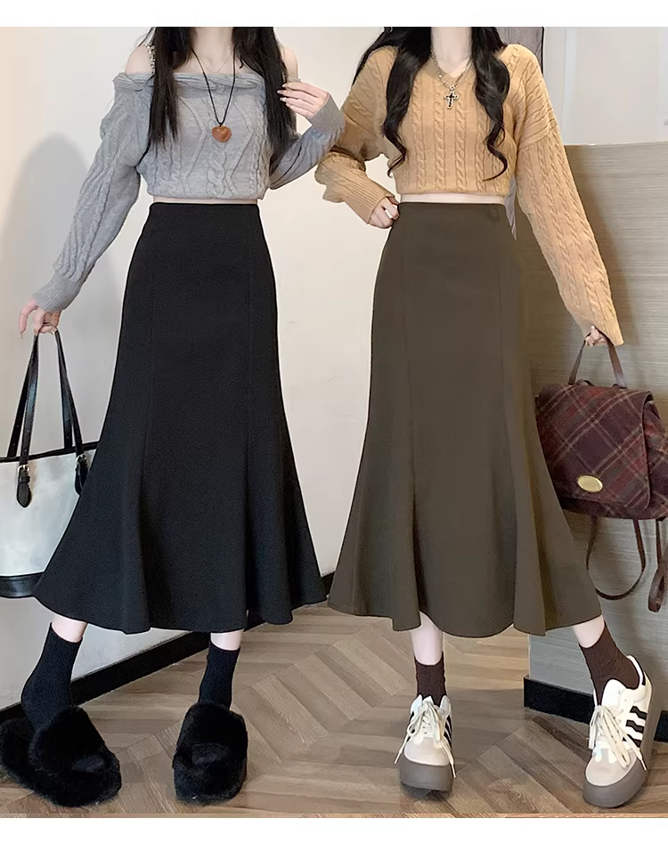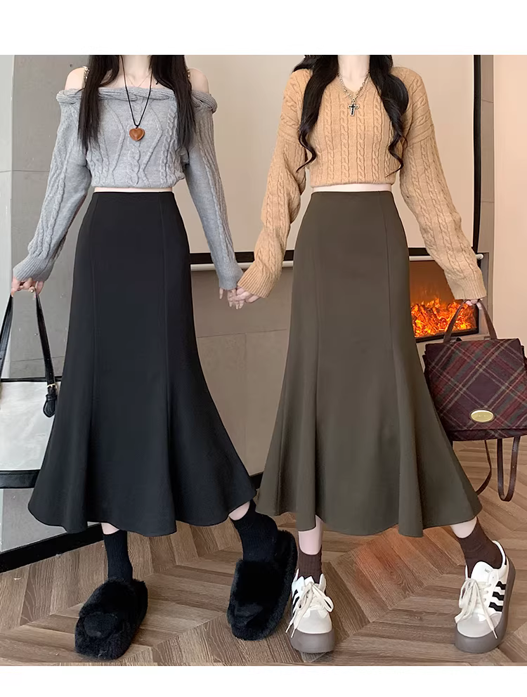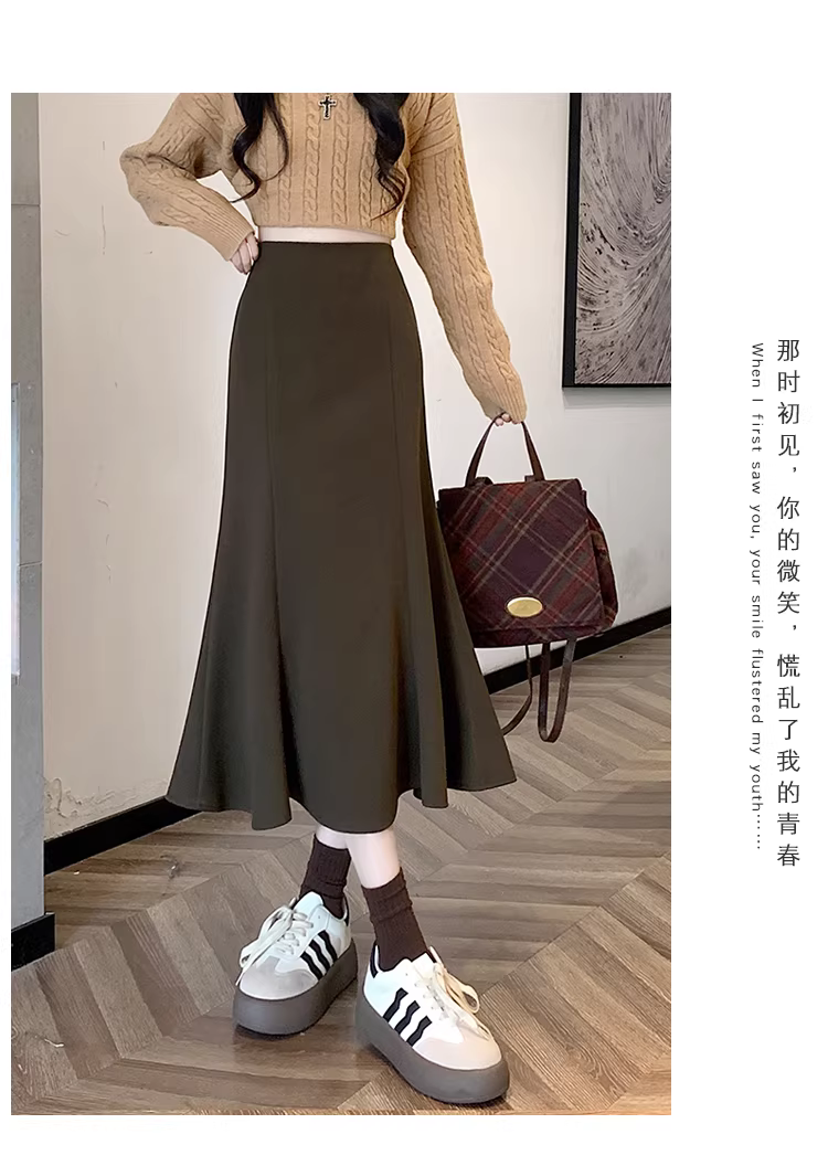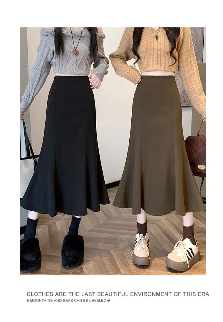 - Váy len trắng La Chapelle dành cho nữ, mùa thu đông 2025, kiểu dáng mới, cạp cao, dáng chữ A, đuôi cá, ôm sát, dài ngang đùi