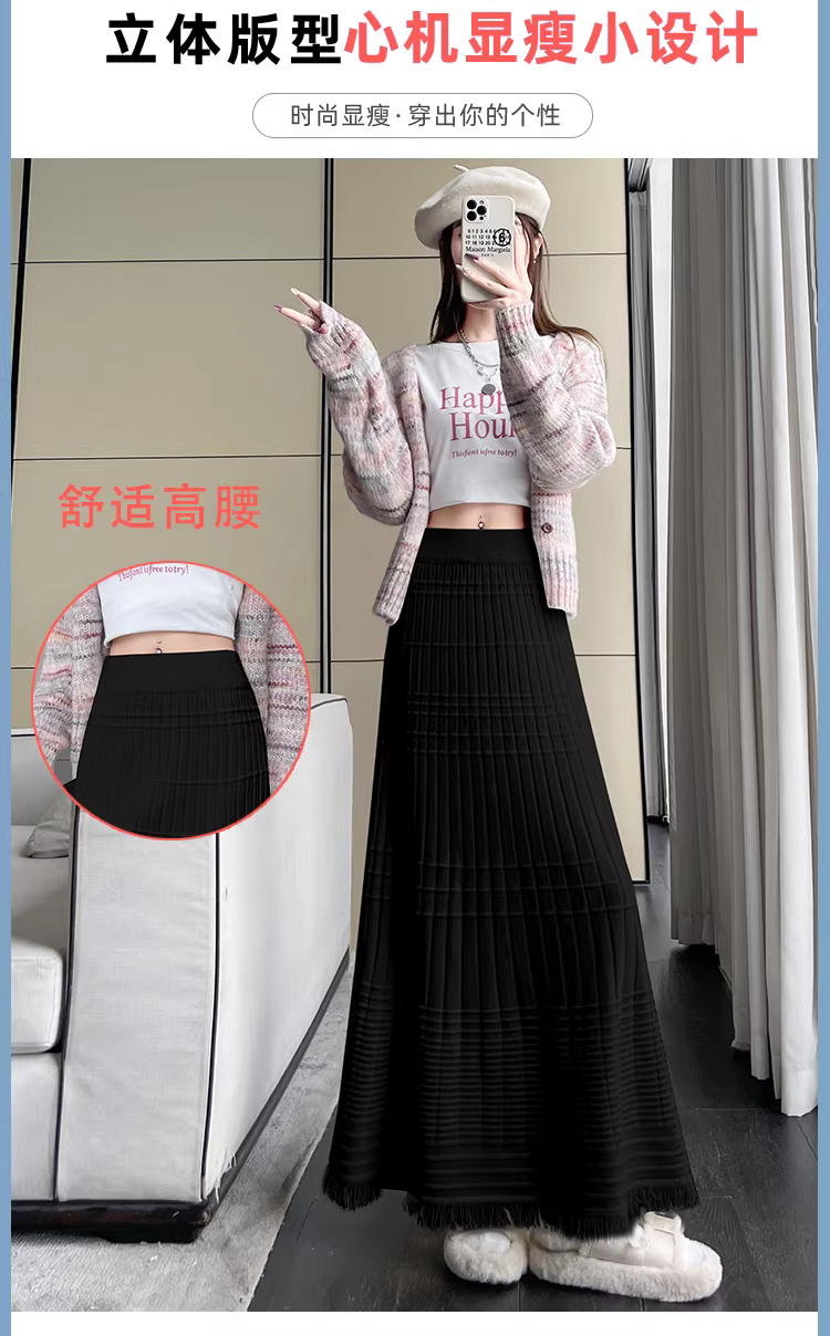 Váy len tua rua cho nữ, áo len dài vừa phải mùa thu đông có kèm váy, váy len, váy đuôi cá chữ A, váy nửa thân