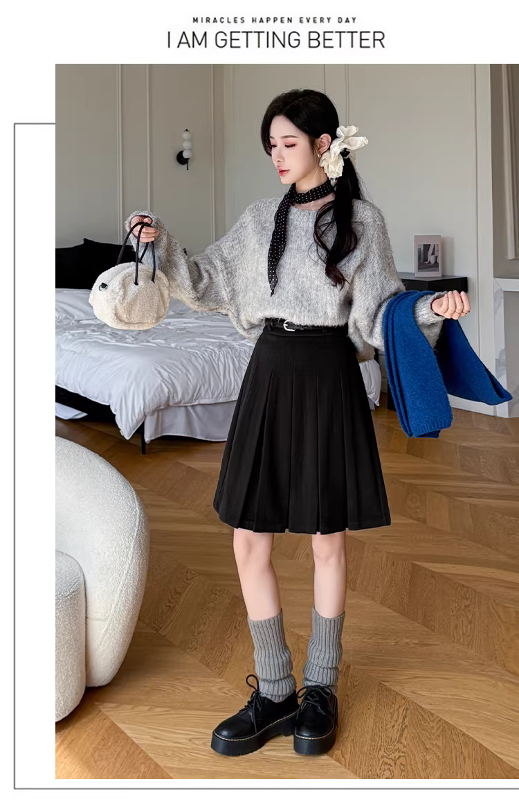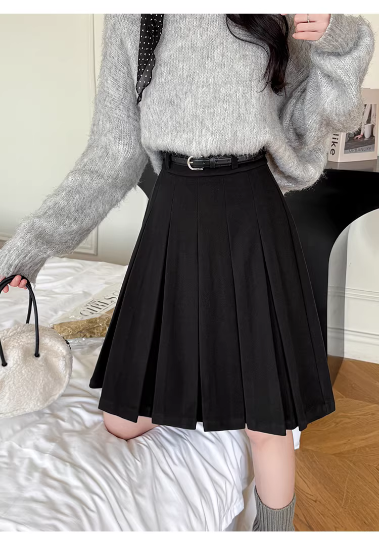 - Váy len xếp ly 5 điểm màu đen, váy chữ A dài trung bình mùa thu đông dành cho nữ, phối cùng áo len, váy len dài trung bình.