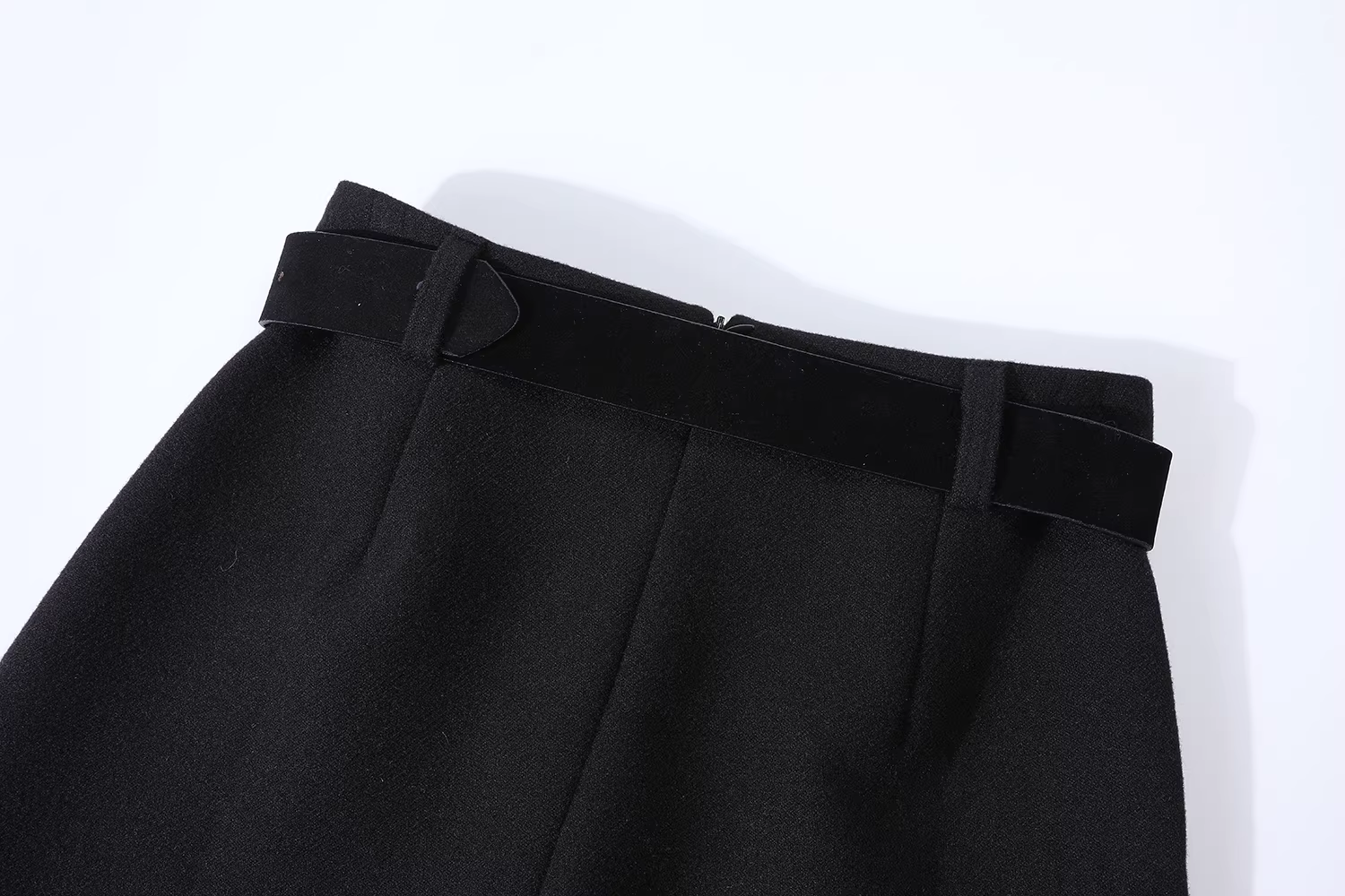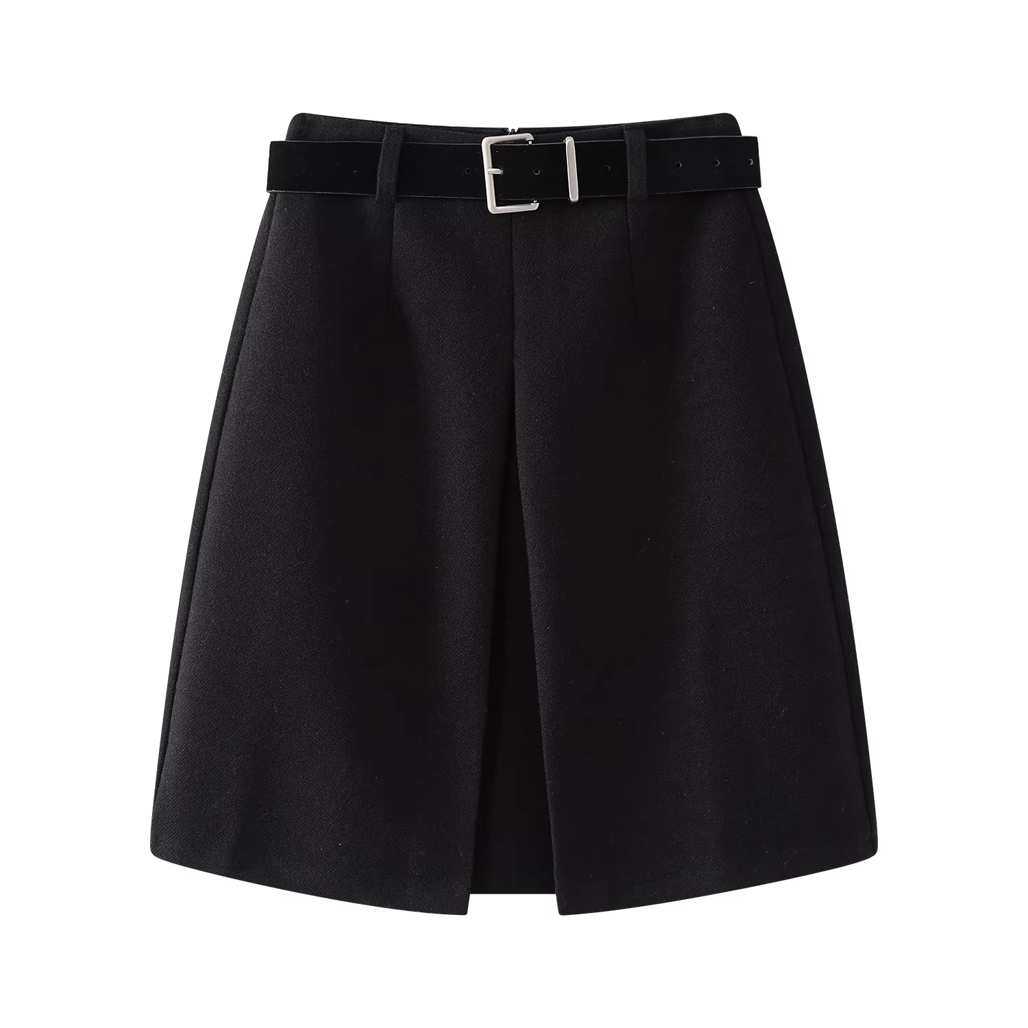 - Váy len xếp ly màu đen sành điệu của CuteGirl dành cho nữ, váy midi chữ A đa năng, eo cao, thanh lịch mùa đông