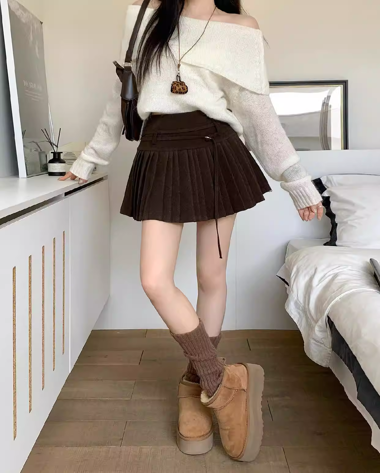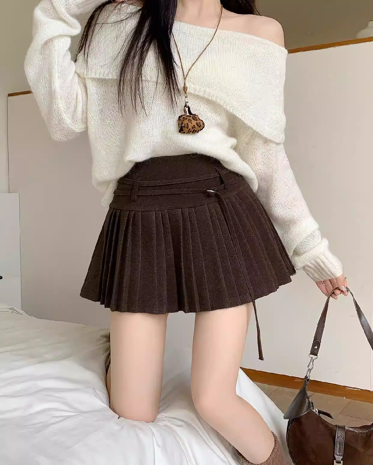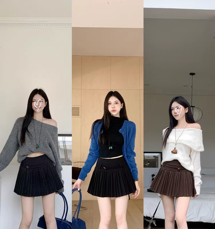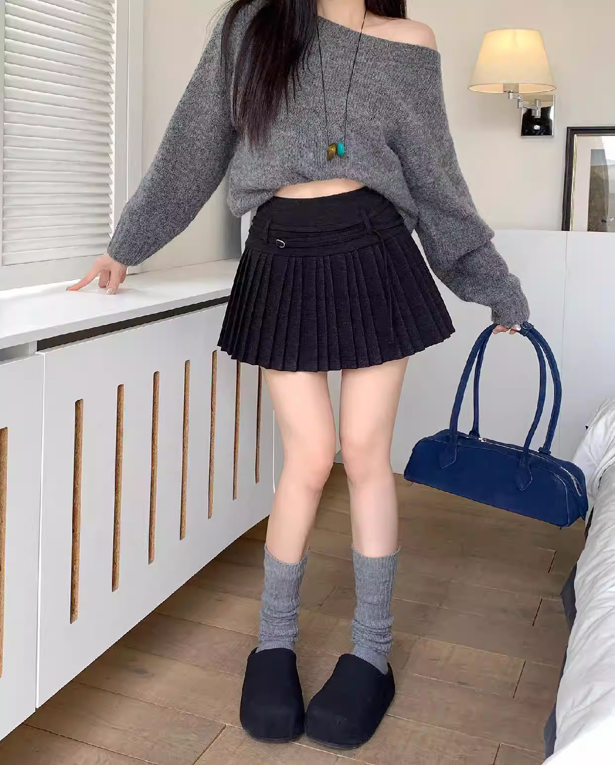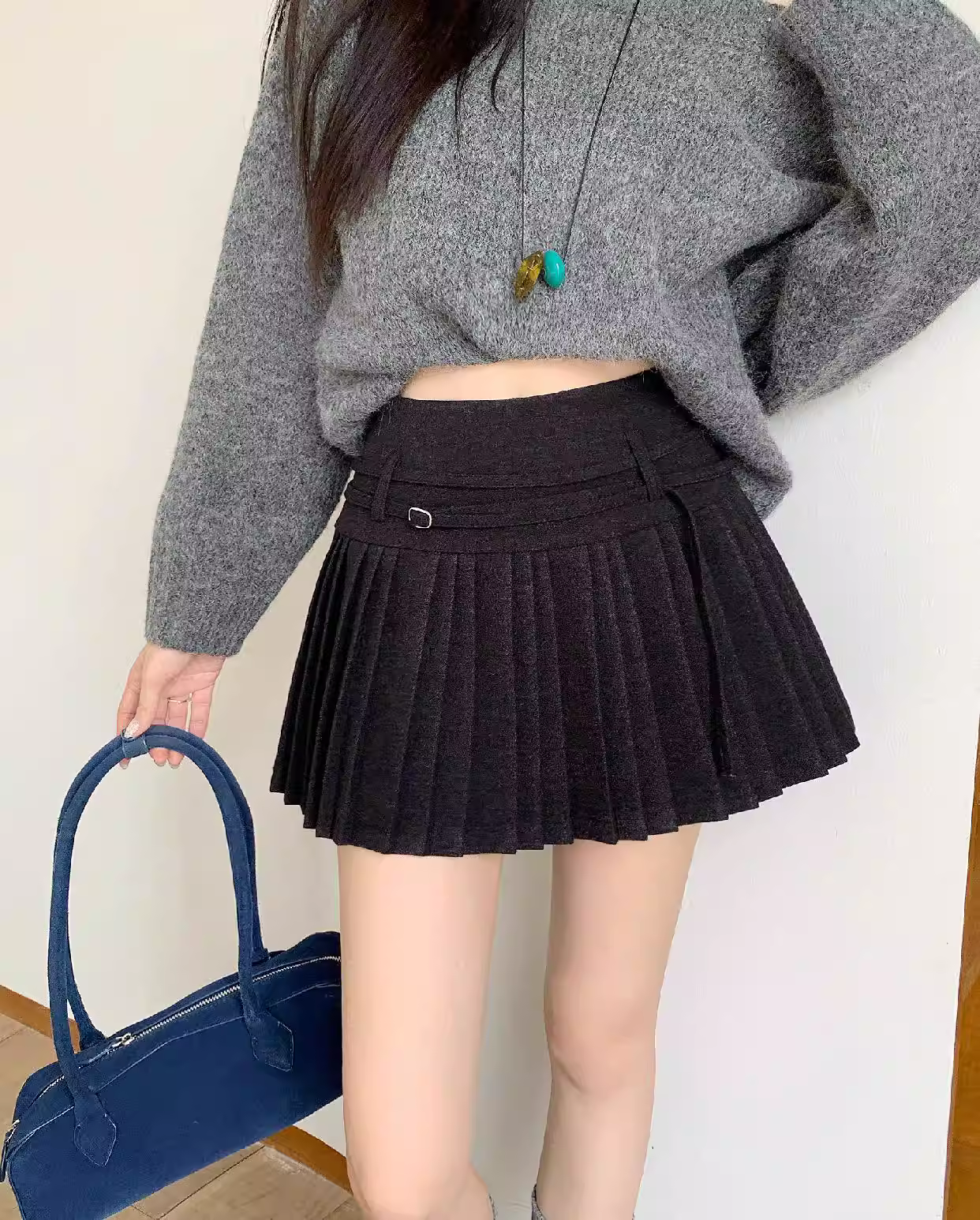 Váy len xếp ly màu đen, váy thu đông nữ, váy chữ A rất đẹp, váy dù, phối với áo len, váy ngắn