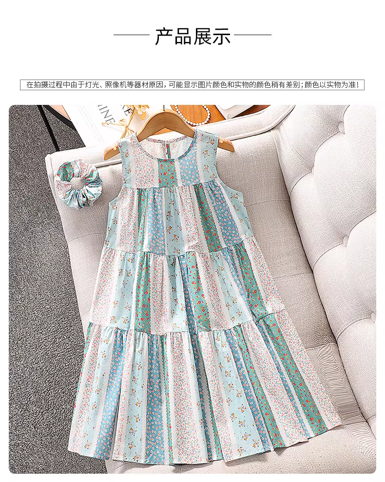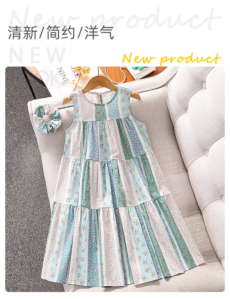 - Váy liền thân bé gái mùa hè kiểu mới 2025, váy công chúa hoa nhí không tay cho bé gái, váy mỏng cho bé gái lớn