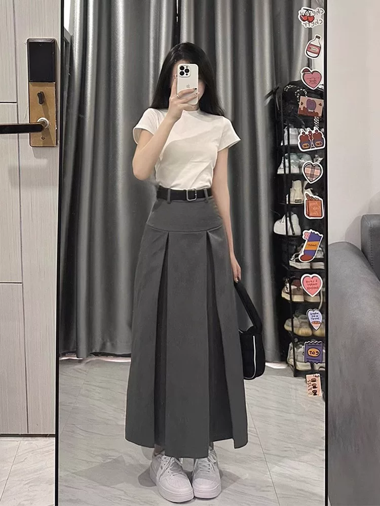 - Váy liền thân dáng lê dành cho nữ, kiểu dáng mỏng mùa hè, cỡ lớn, lưng cao, che hông, váy chữ A thon gọn, váy xếp ly.