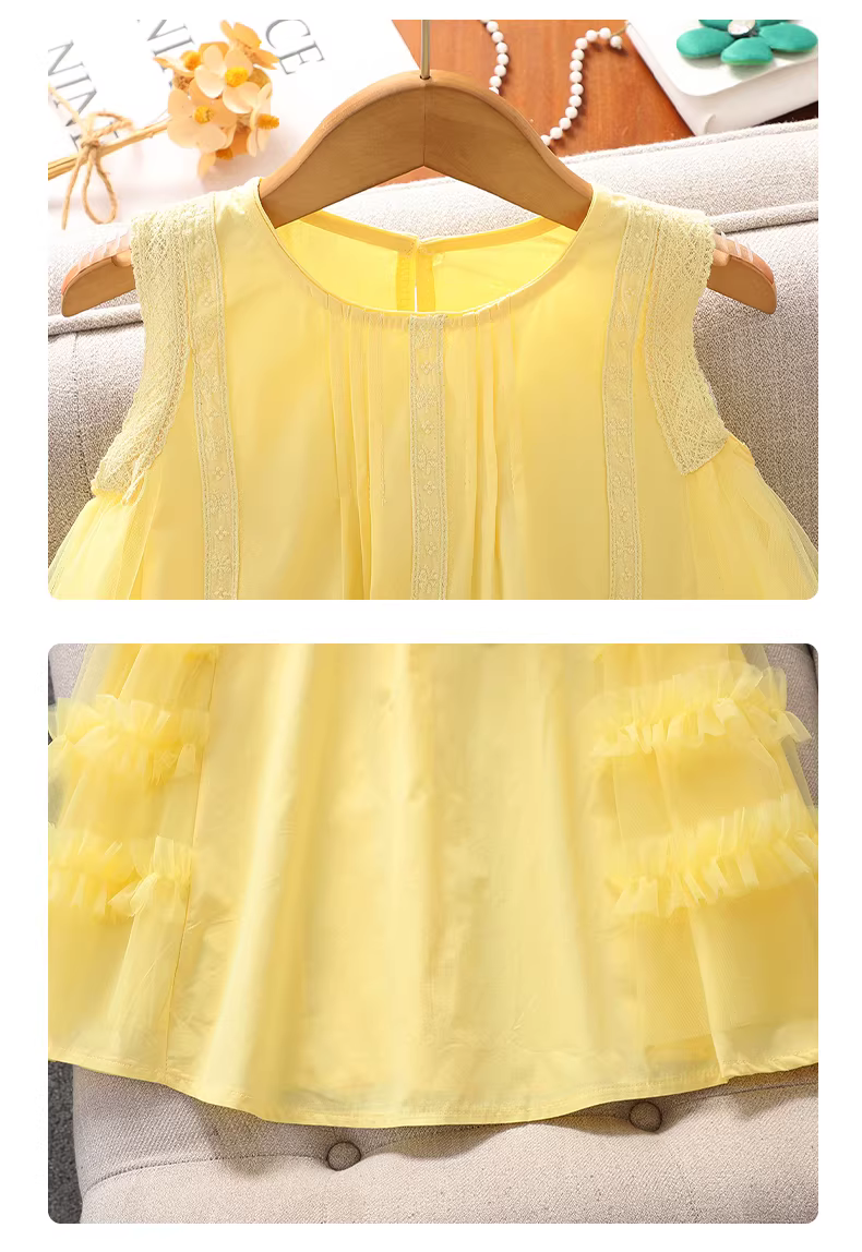 - Váy liền thân không tay mùa hè kiểu mới 2025 cho bé gái, váy yếm lưới, váy mùa hè công chúa cho bé gái