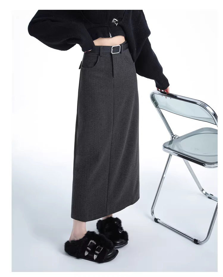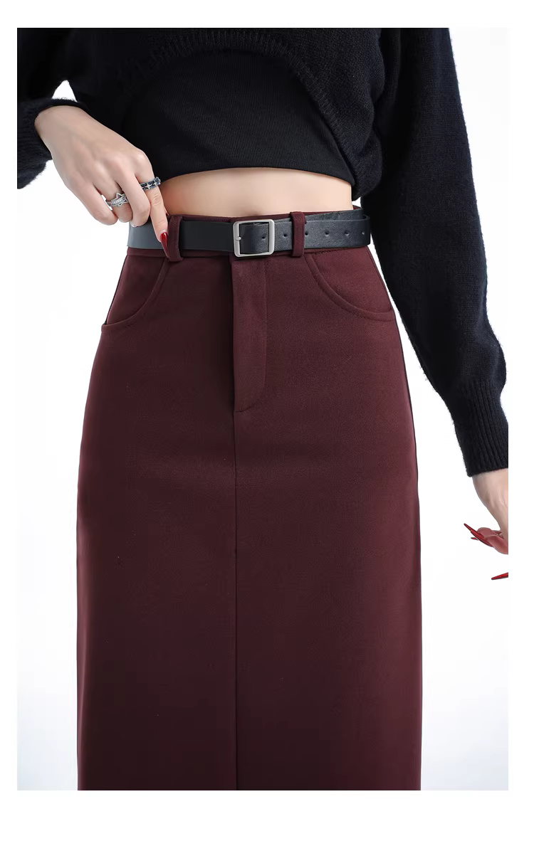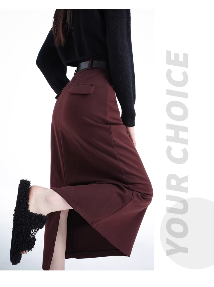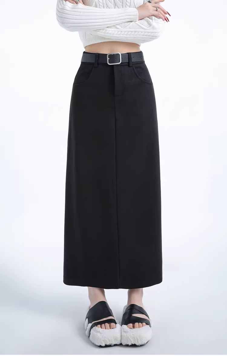 - Váy liền thân len đen La Chapelle dành cho nữ, kiểu dáng xẻ tà chữ A, dài ngang đùi, mùa thu đông 2025 mới