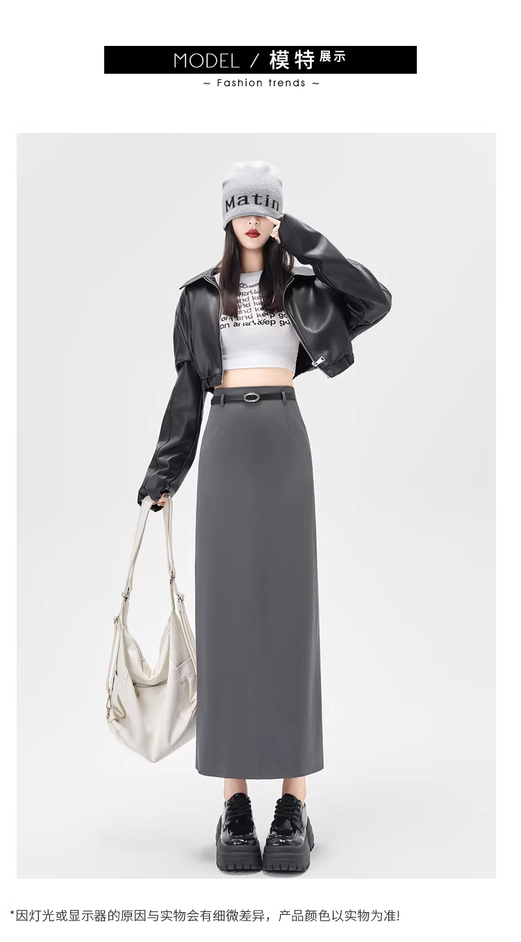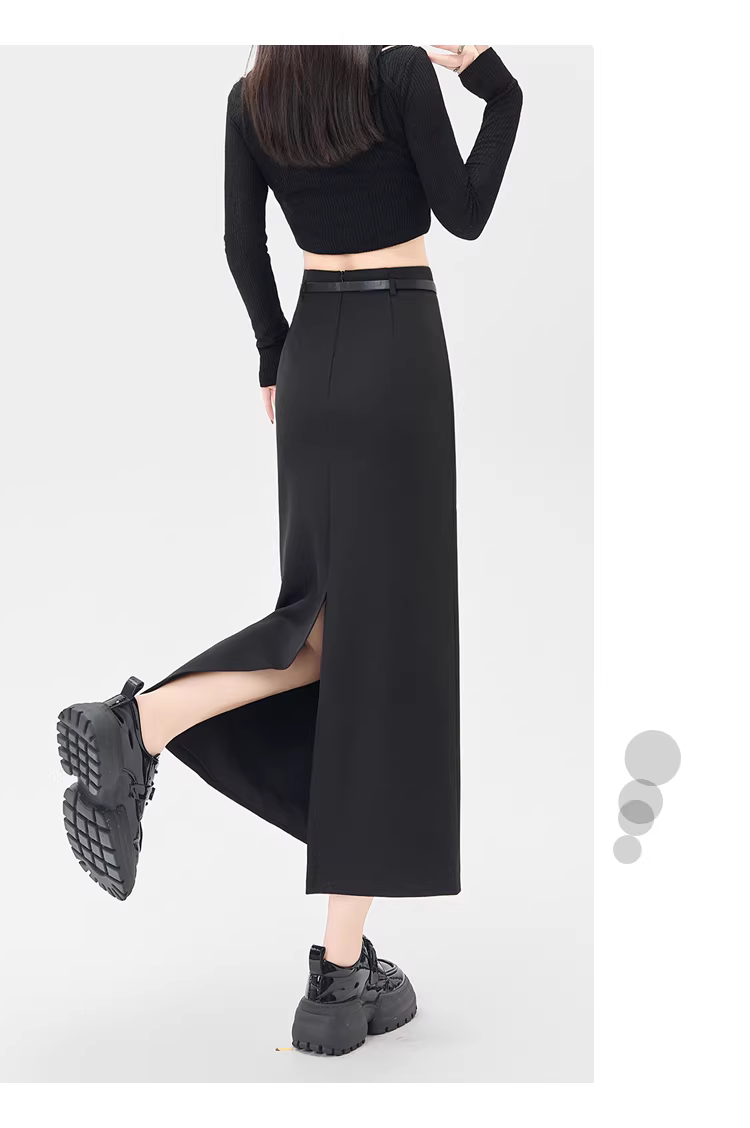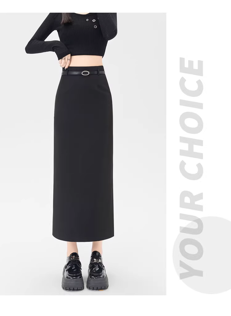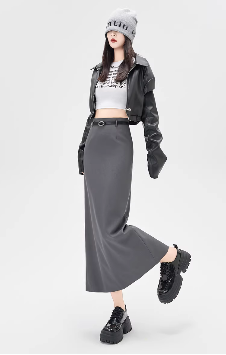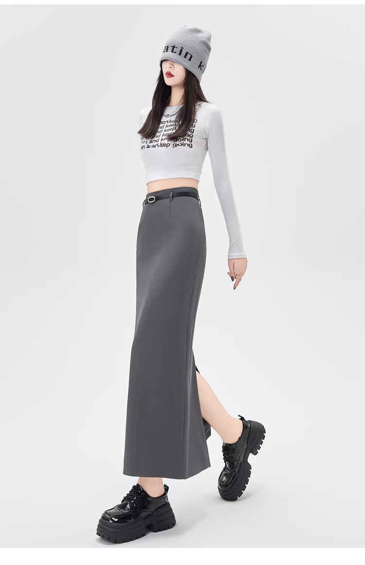 - Váy liền thân màu xám La Chapelle dành cho nữ, mẫu mới thu đông 2025, cạp cao, xẻ tà, dáng bút chì, midi.