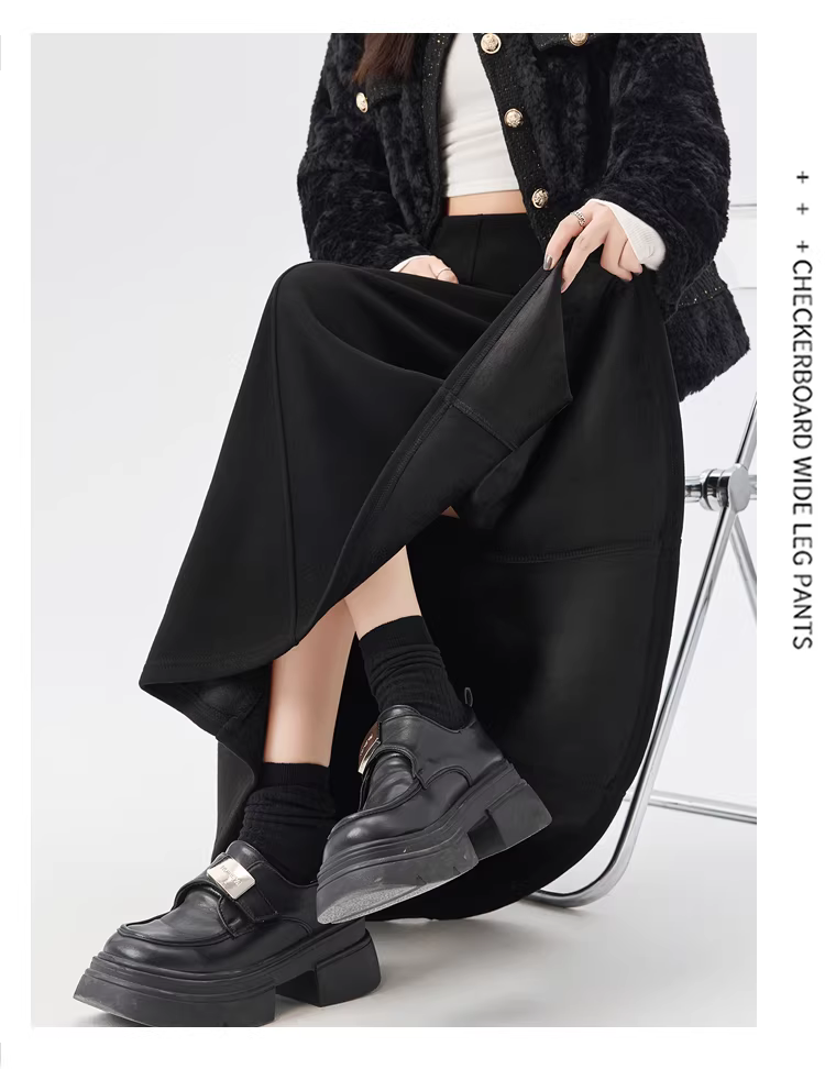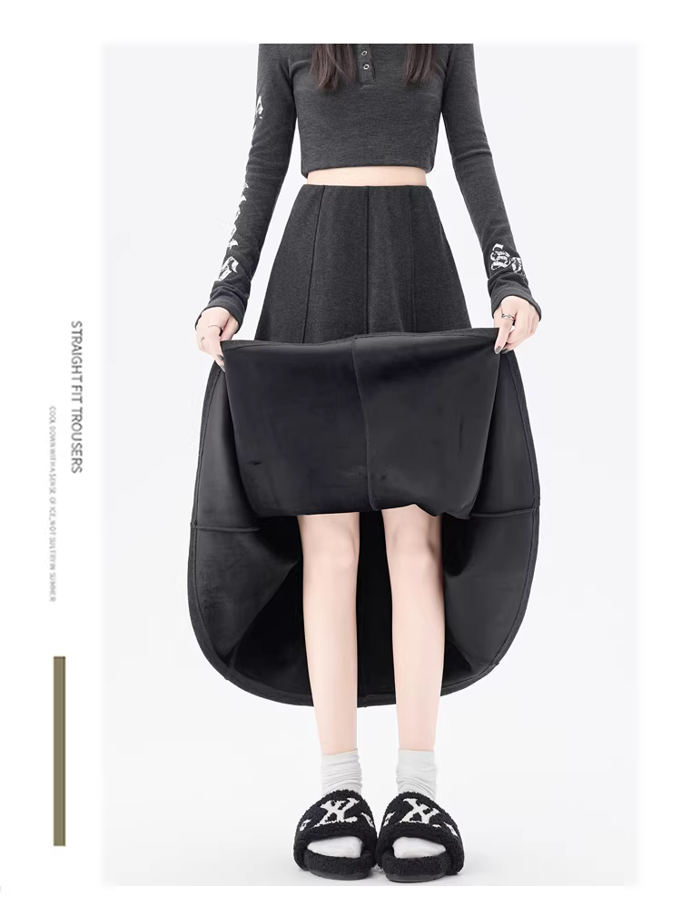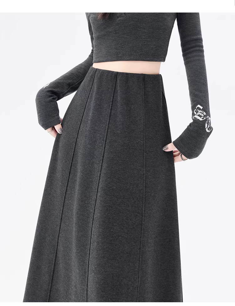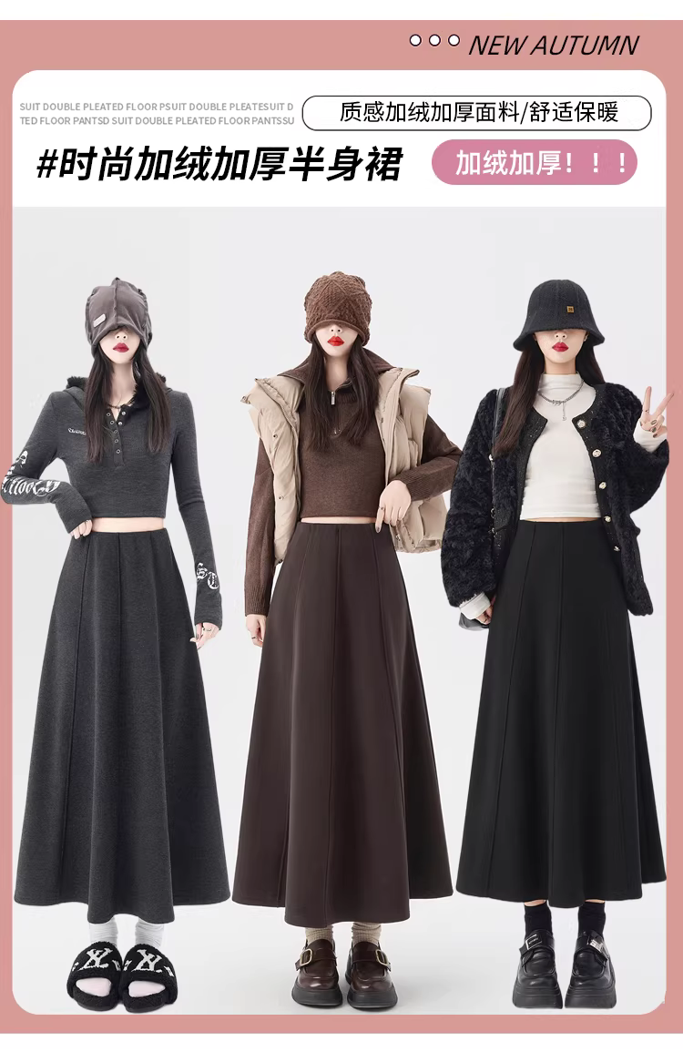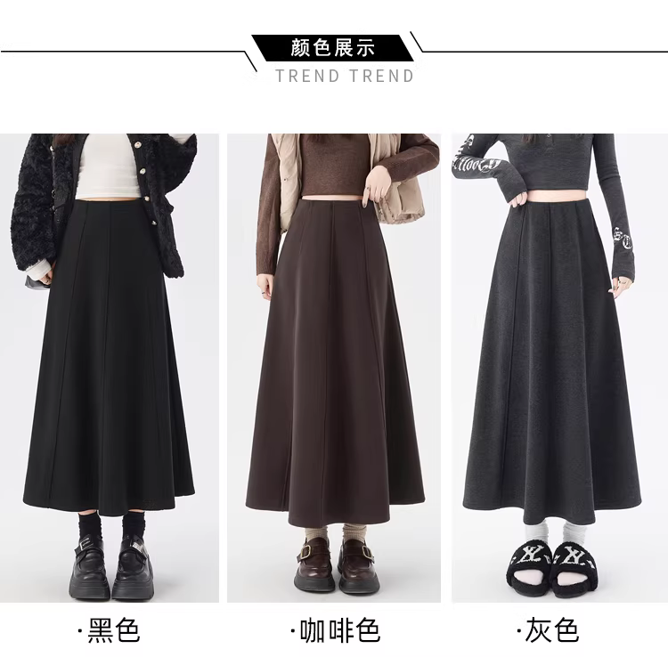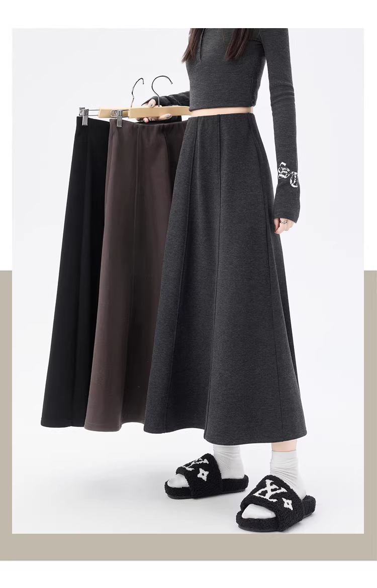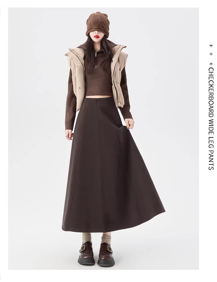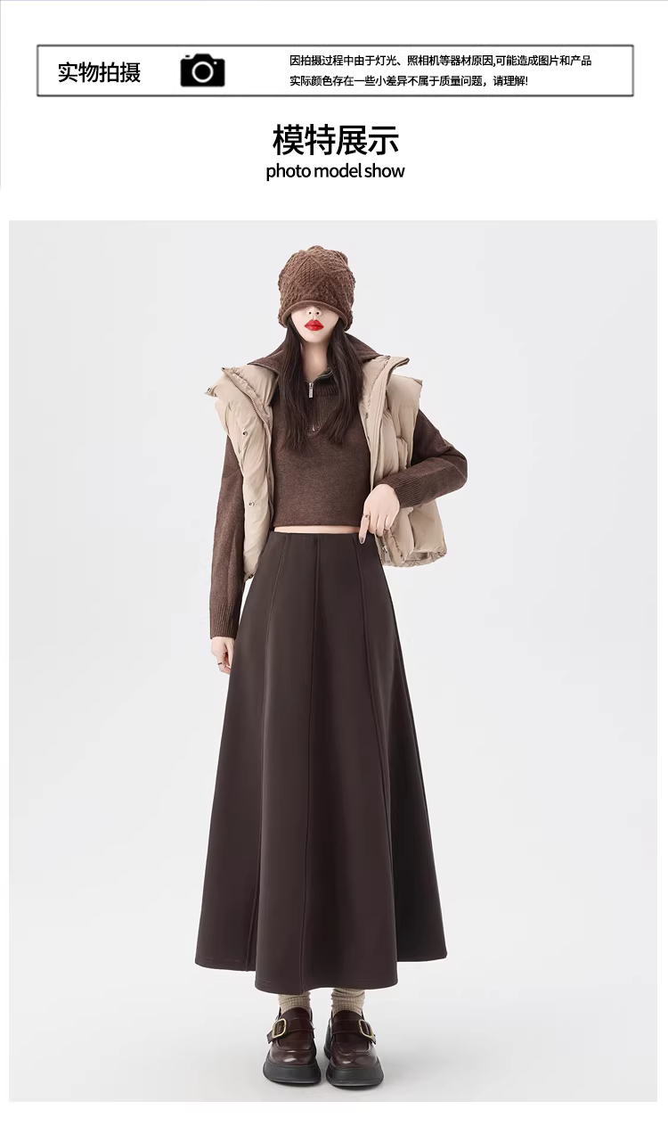 - Váy lông cừu dày màu cà phê La Chapelle dành cho nữ 2025 mới mùa thu đông váy dài chữ A lưng cao dáng dù