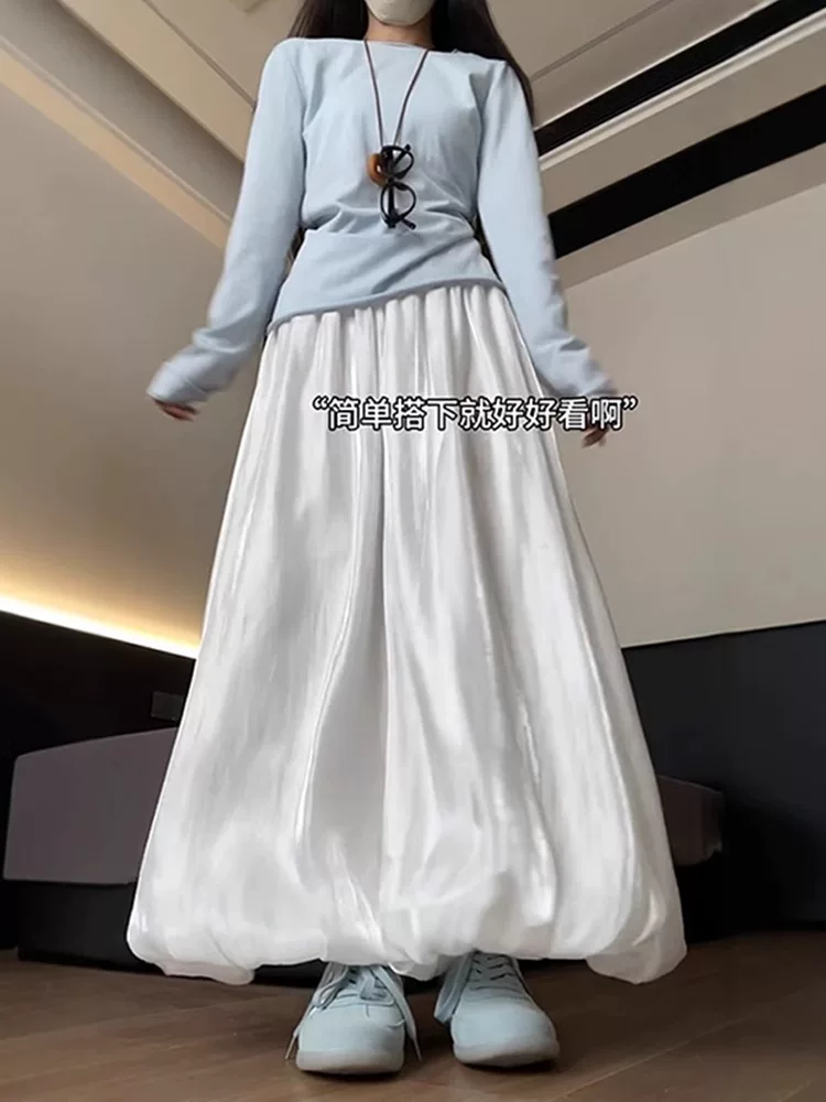 - Váy lửng satin trắng cho nữ, size lớn mùa hè, cạp cao, dáng rộng, tôn dáng, dành cho người có thân hình quả lê, quần kiểu đèn lồng, mặc thường ngày