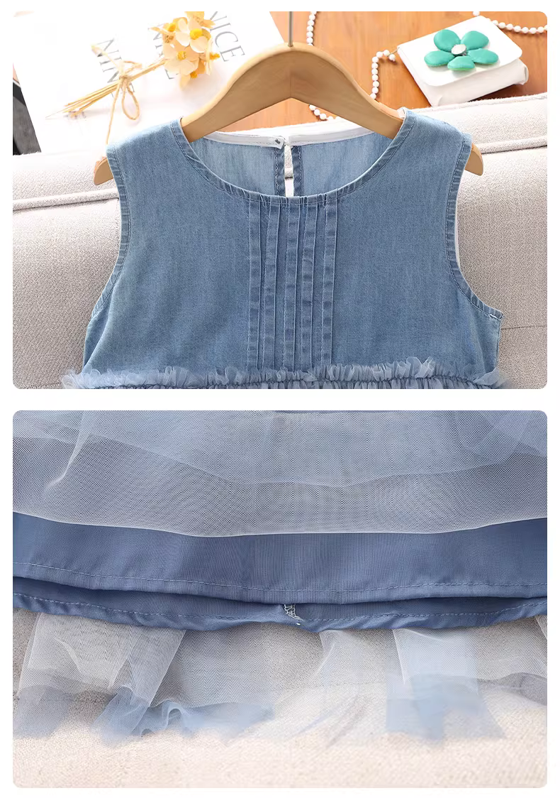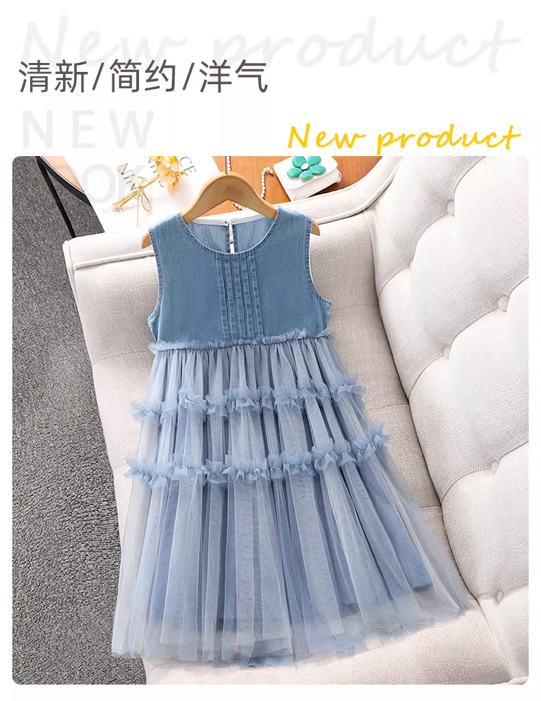 Váy lưới mùa hè cho bé gái kiểu mới 2025, váy yếm không tay, váy công chúa bồng bềnh cho bé gái