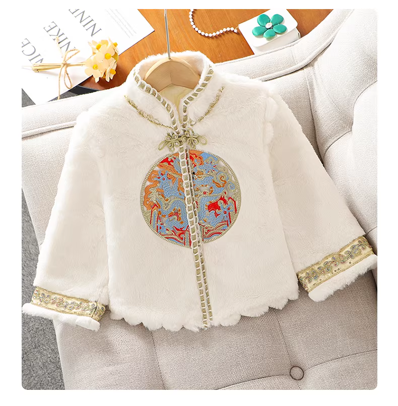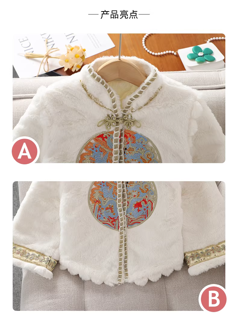 - Váy Mamian cho bé gái, trang phục Tết có lông cừu, kiểu mới thu đông 2025, trang phục Tết kiểu Trung Hoa cho trẻ em.