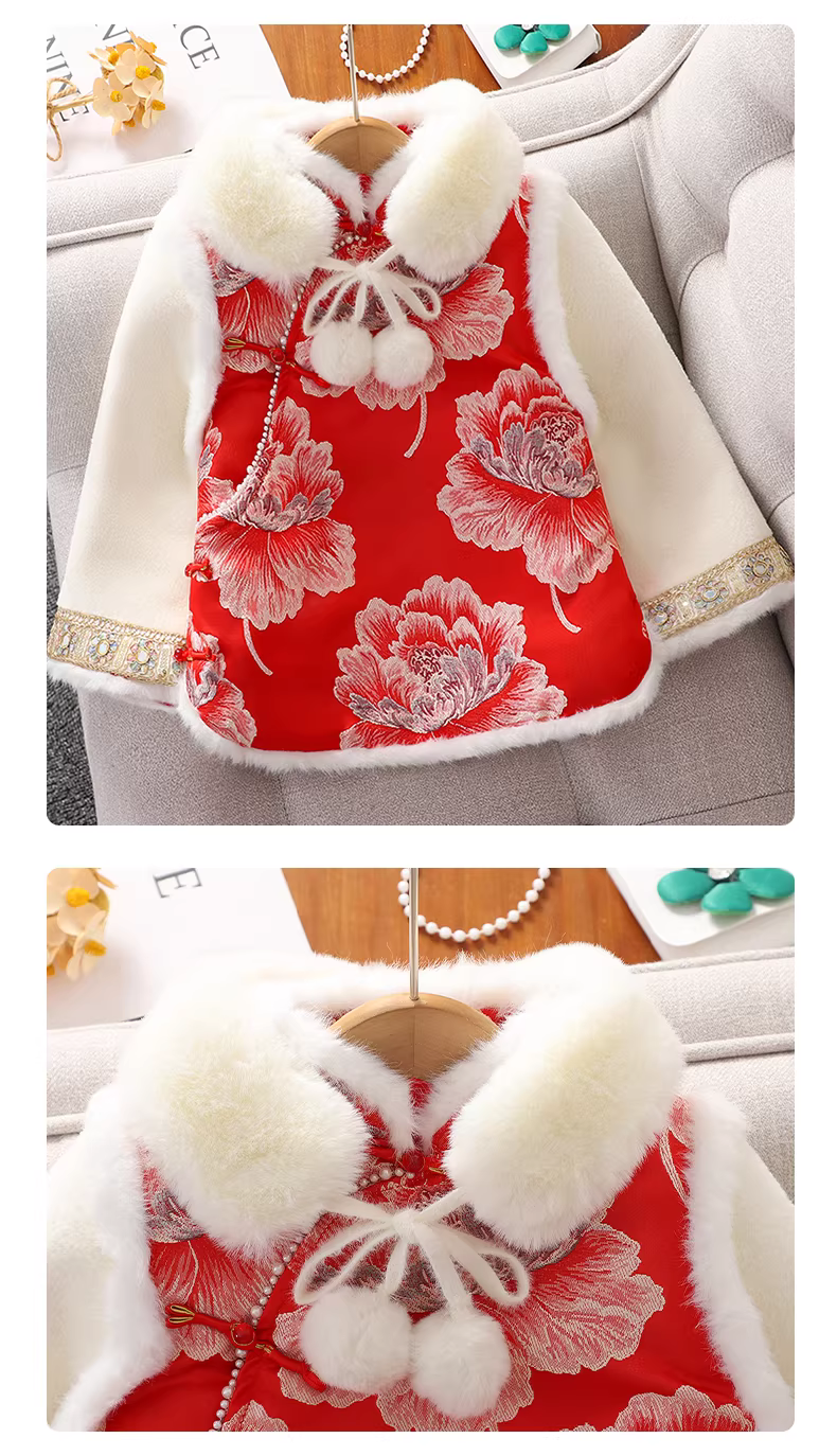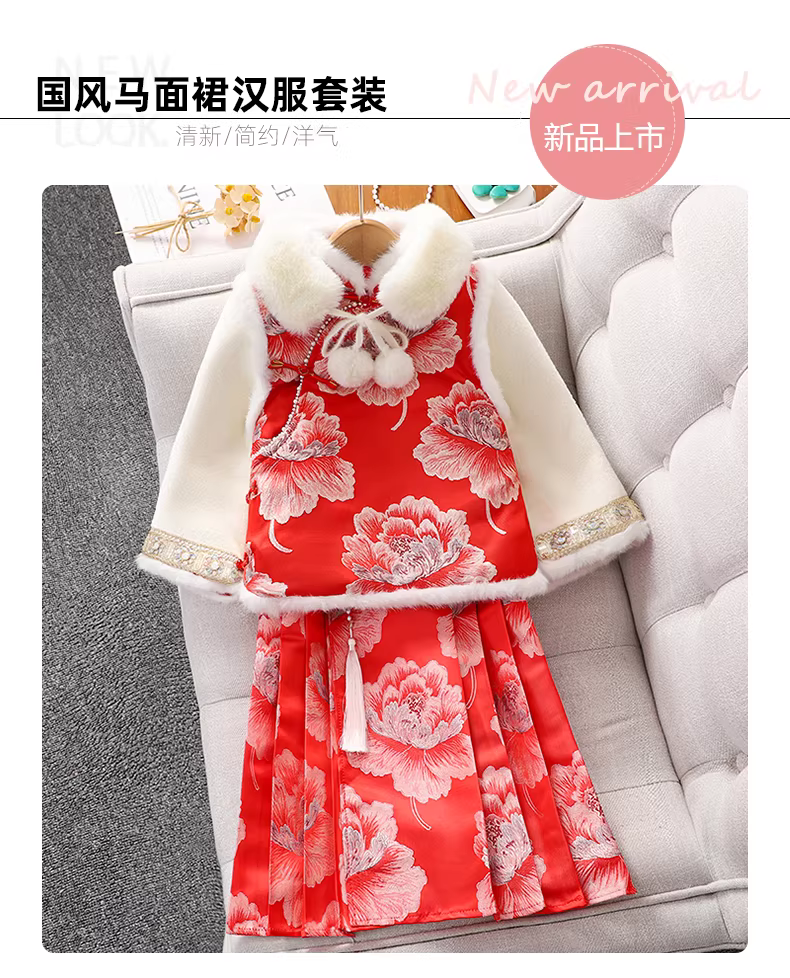 - Váy mặt ngựa cho bé gái Trang phục năm mới, quần áo năm mới màu đỏ cho bé gái, váy Hanfu mùa đông 2025 váy chào mừng năm mới cho trẻ em