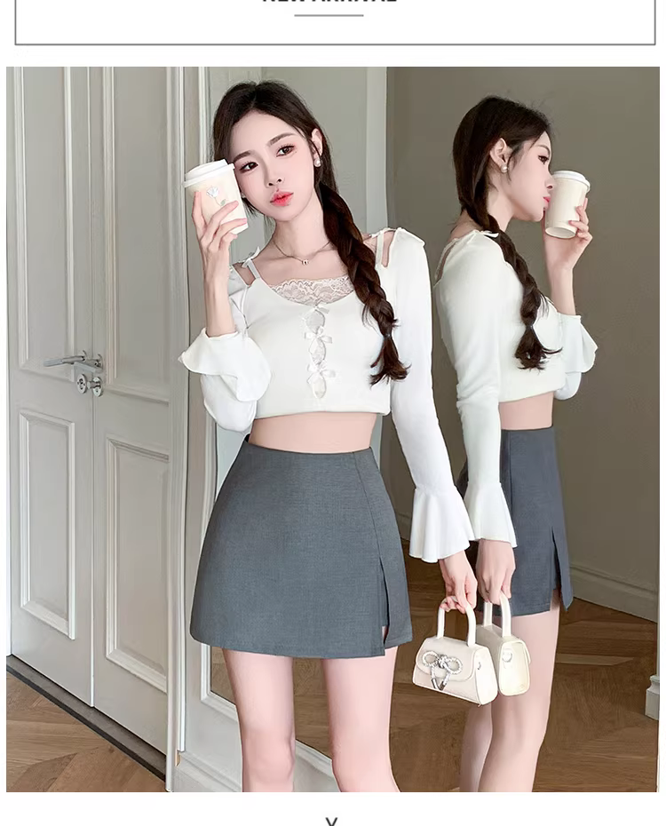 - Váy màu xám dành cho nữ, váy quần hai trong một mùa xuân hè, váy quần giả hai mảnh, váy ôm hông chữ A, váy ngắn cực ngắn và gợi cảm.